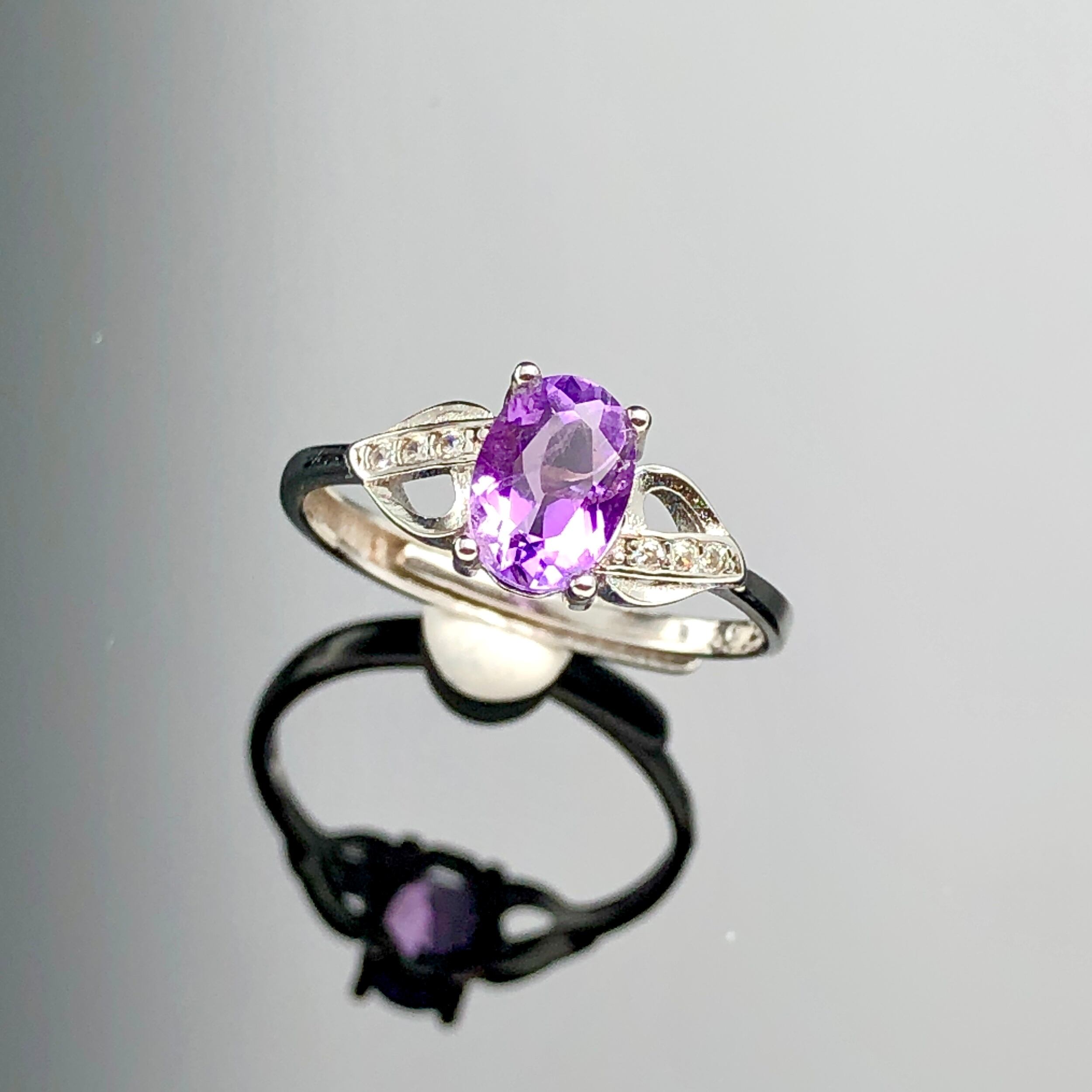 透明度が高く、美しいパープルカラーが人気のアメジストシルバーリング。
