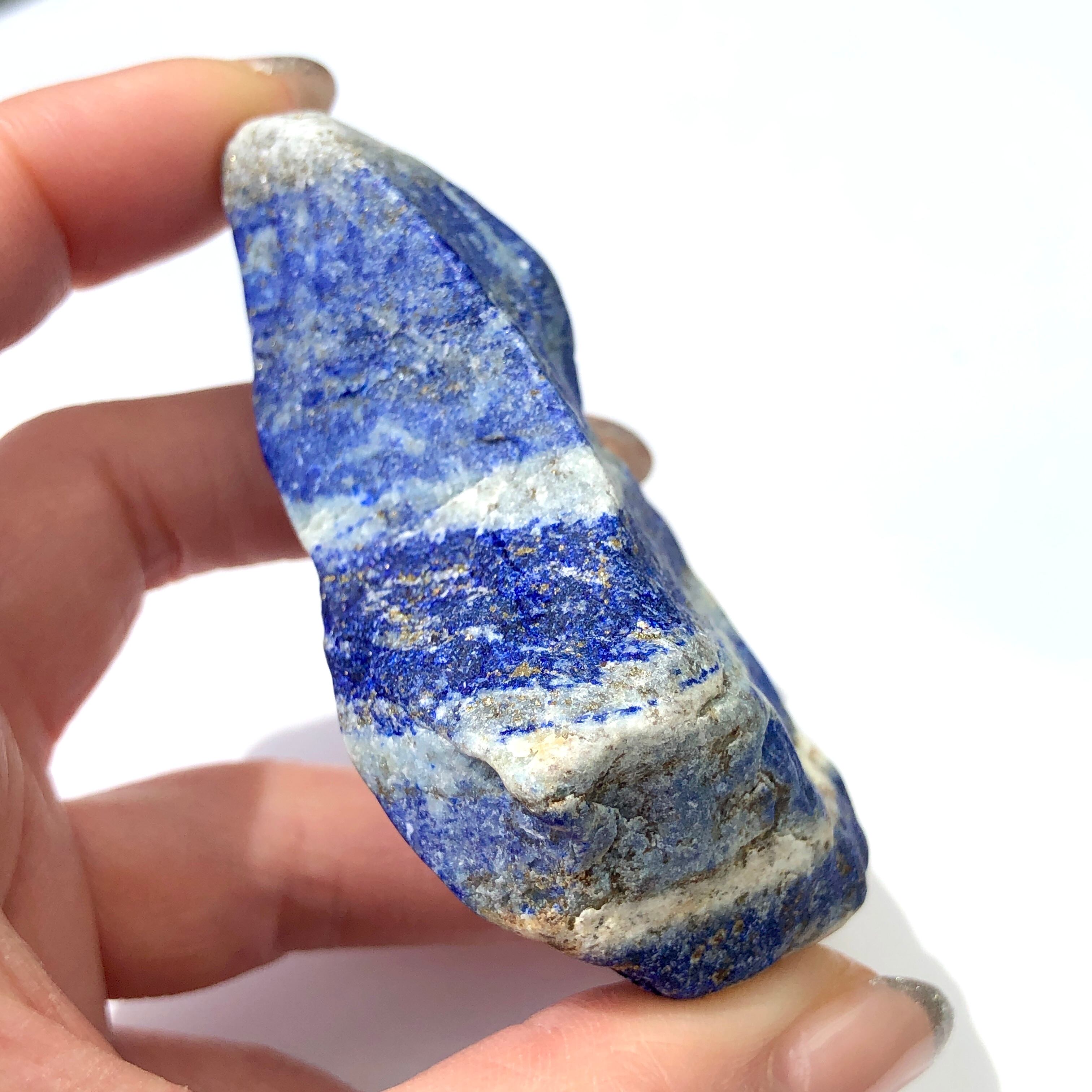 深いブルーが美しい、高発色で鮮やかな色合いのラピスラズリ原石です。