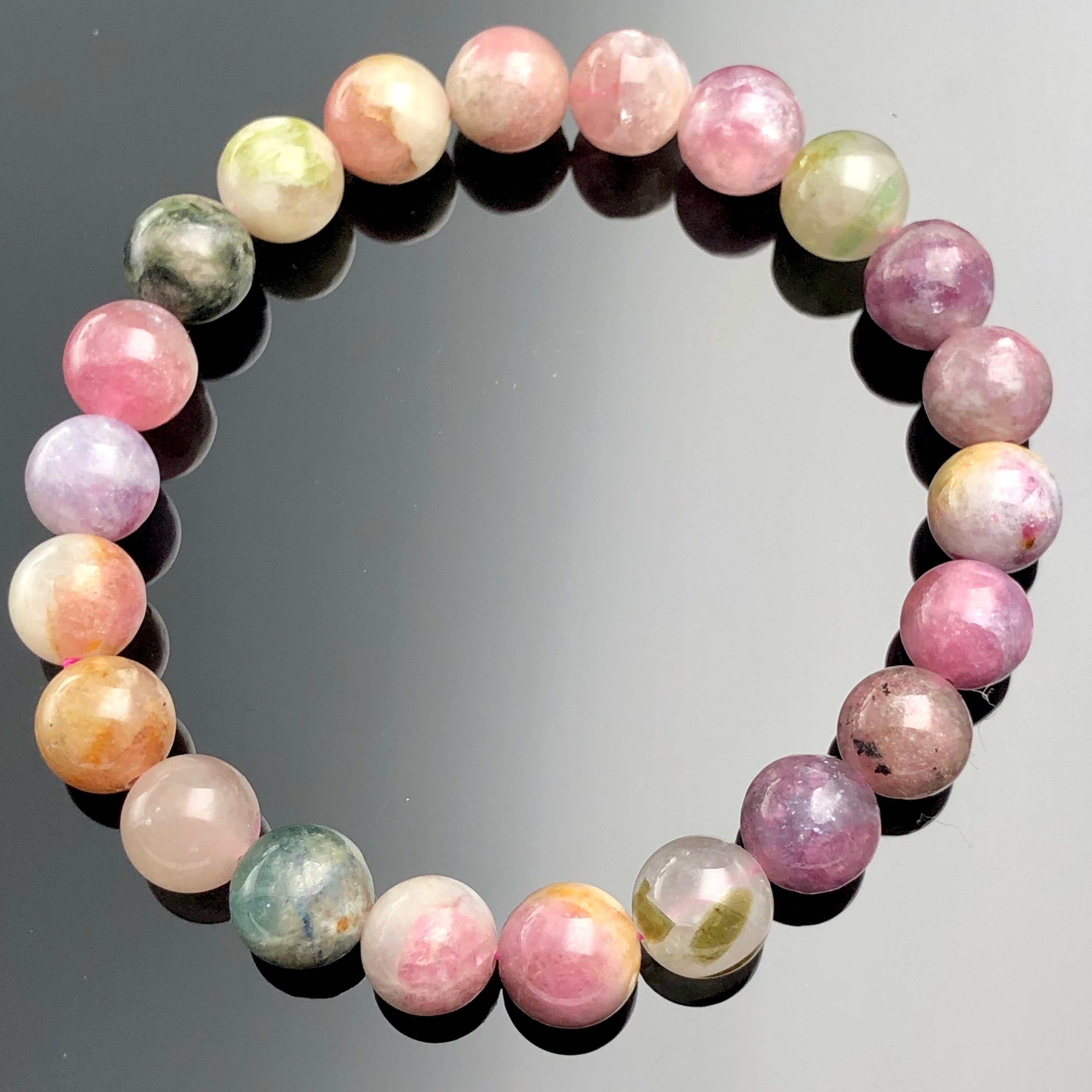 ピンク~グリーンを中心とした、華やかな色合いのミックスピンクトルマリンブレスレット。