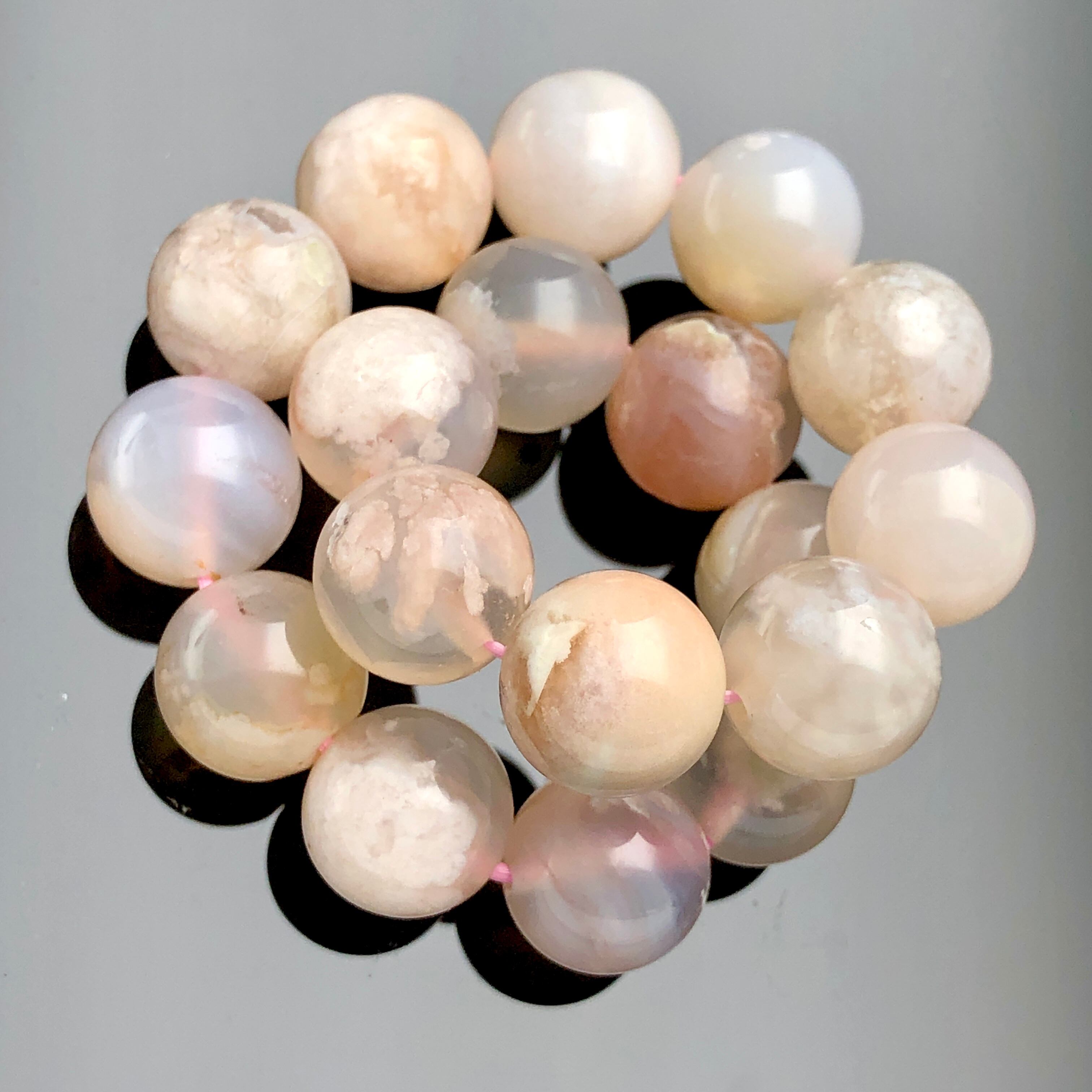 淡いピンクカラーのアゲートに、可愛らしい桜模様の内包物が人気のチェリーブロッサムアゲート(桜瑪瑙)です。