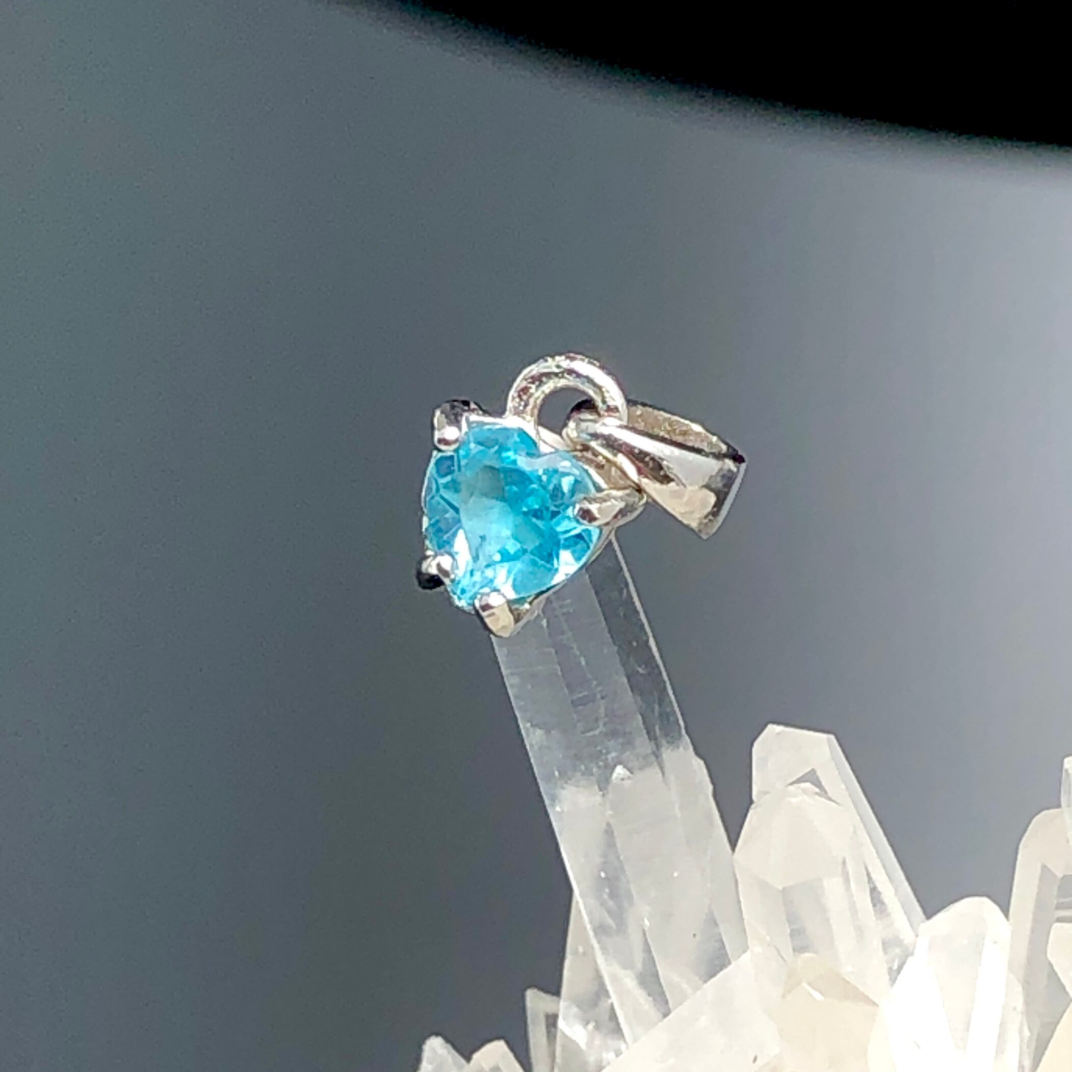 透き通るようなブルーカラーが美しいアパタイトハート型ペンダントトップ。