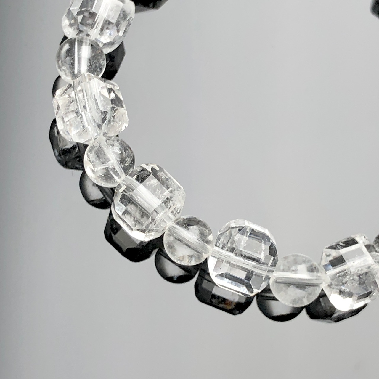 ブラジル産【水晶】キューブ型×ラウンドブレスレット s785