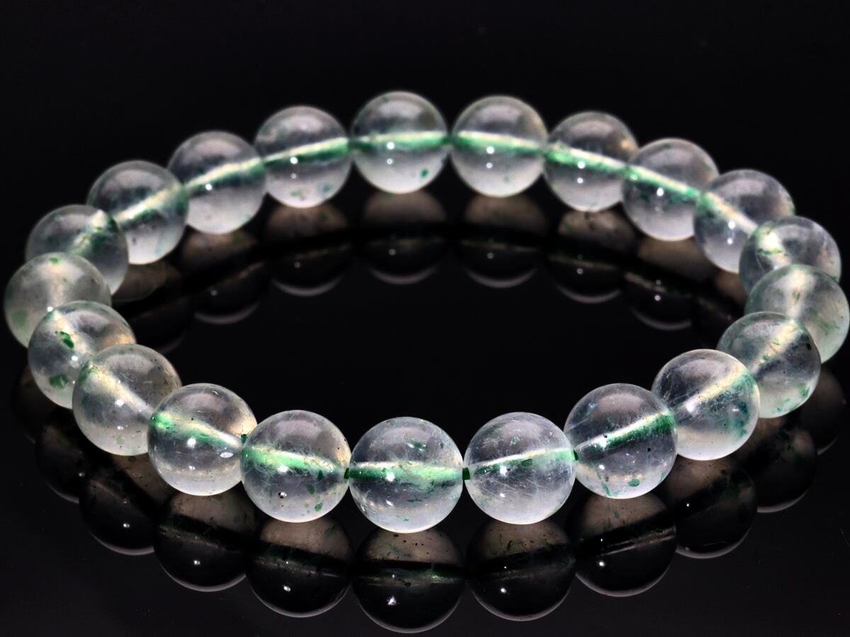 【1点物】超希少!★高発色★輝くマイカ★天然石ブレスレット/フックサイトインクォーツ(グリーンマイカ/mica/Fuchsite/クロム雲母)/ラウンド/約9mm/1本/ab-04208