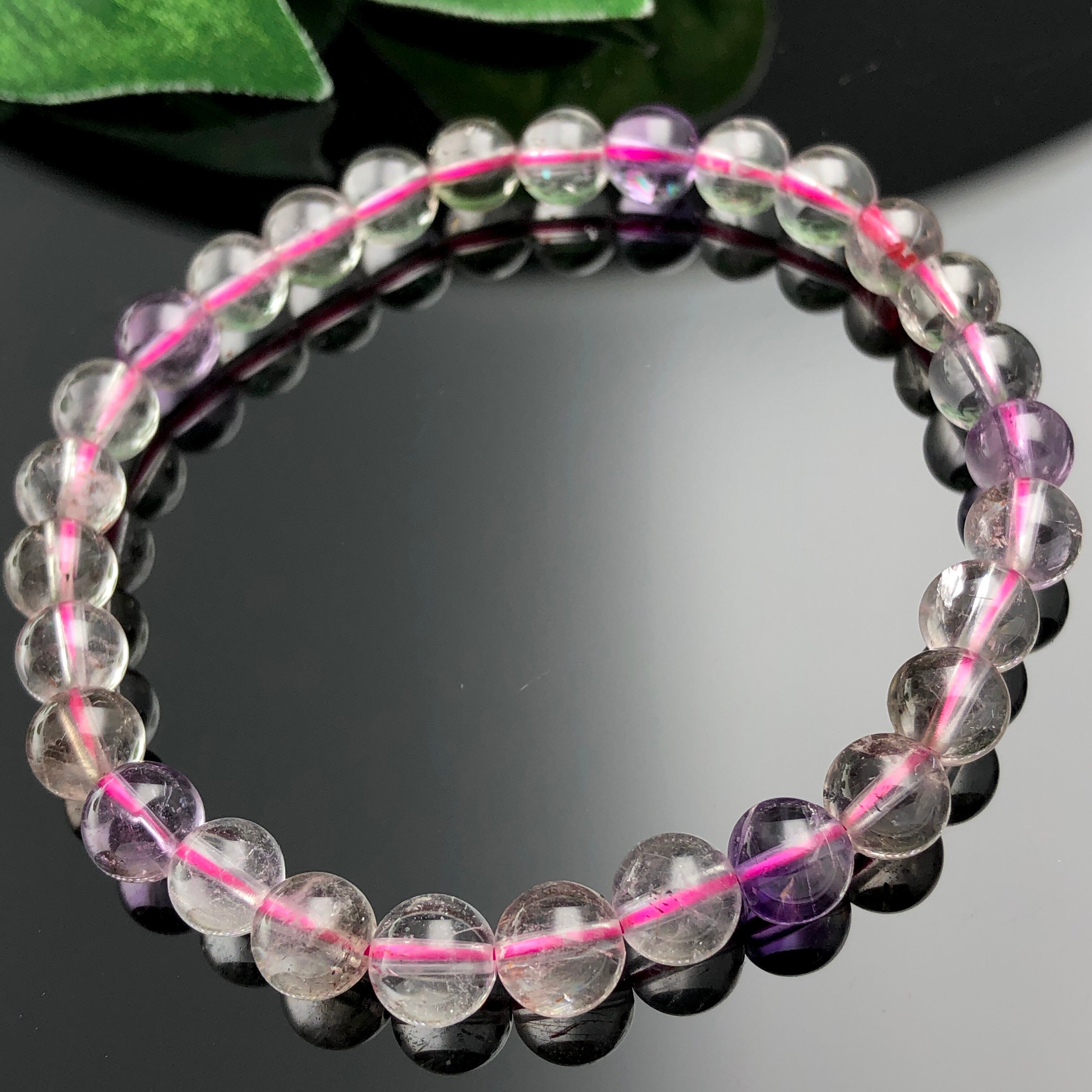 アメジスト・クリアクオーツ・スモーキークォーツ・カコクセナイト・ルチル・ゲーサイト・レピドクロサイトの 7種類の石のパワーが交わった強い力を持つと言われています。