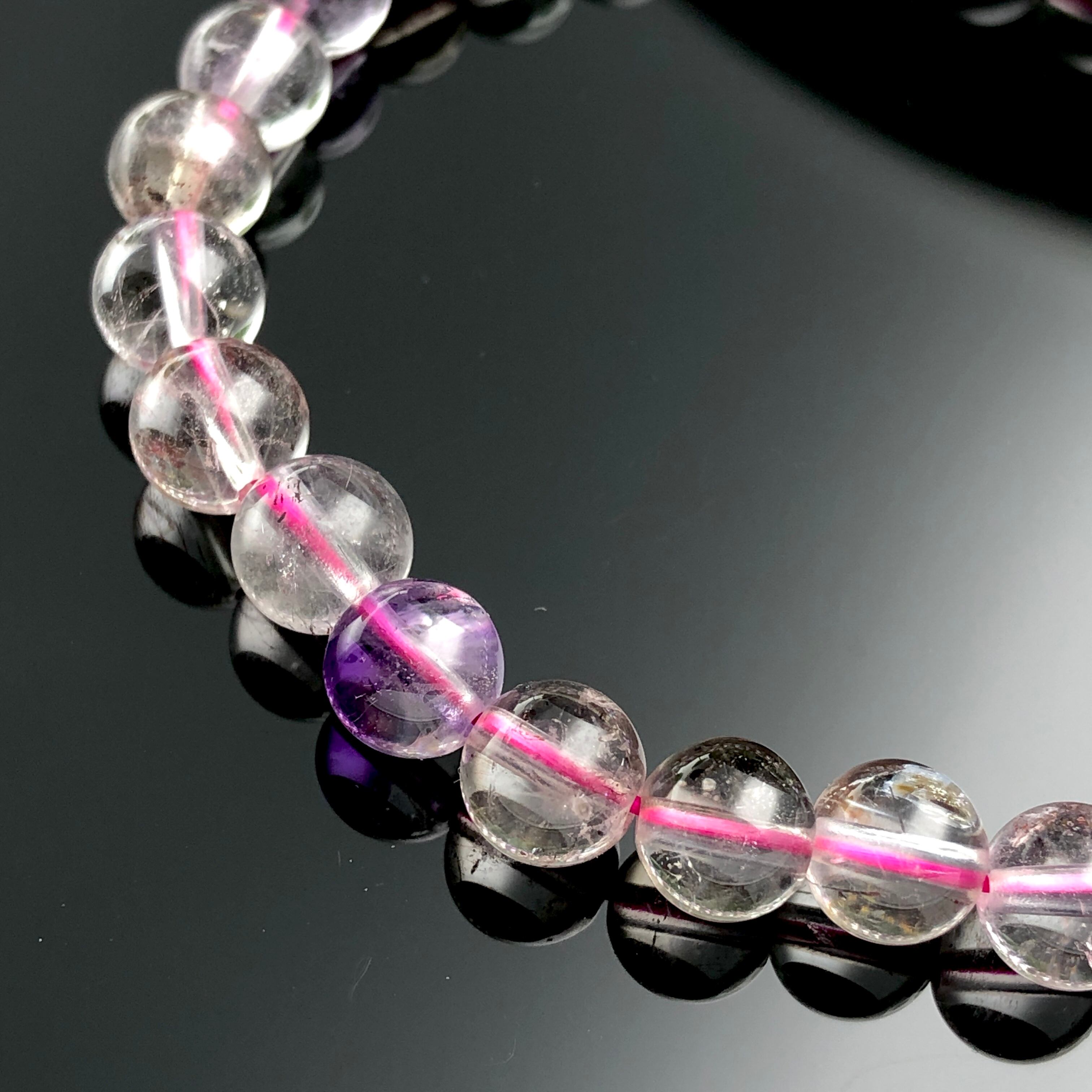 高い透明感と美しい内包物が印象的なスーパーセブンのブレスレット。