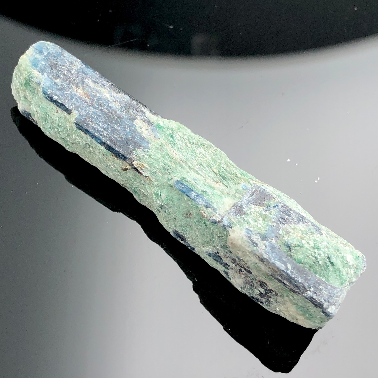美しい輝きを放つグリーンカイヤナイトの原石。