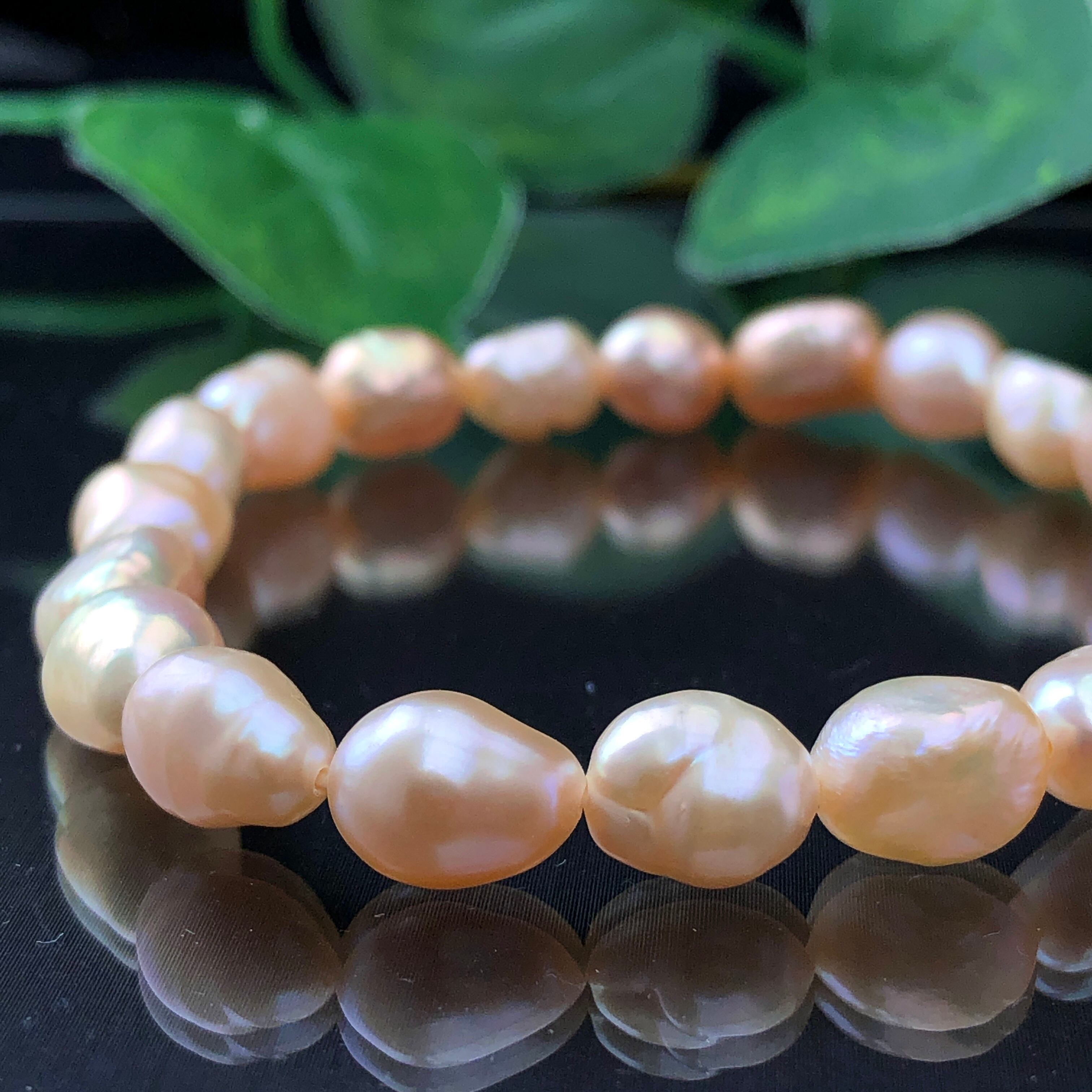 ピンク淡水パールブレスレット 約9×7ミリ y1109