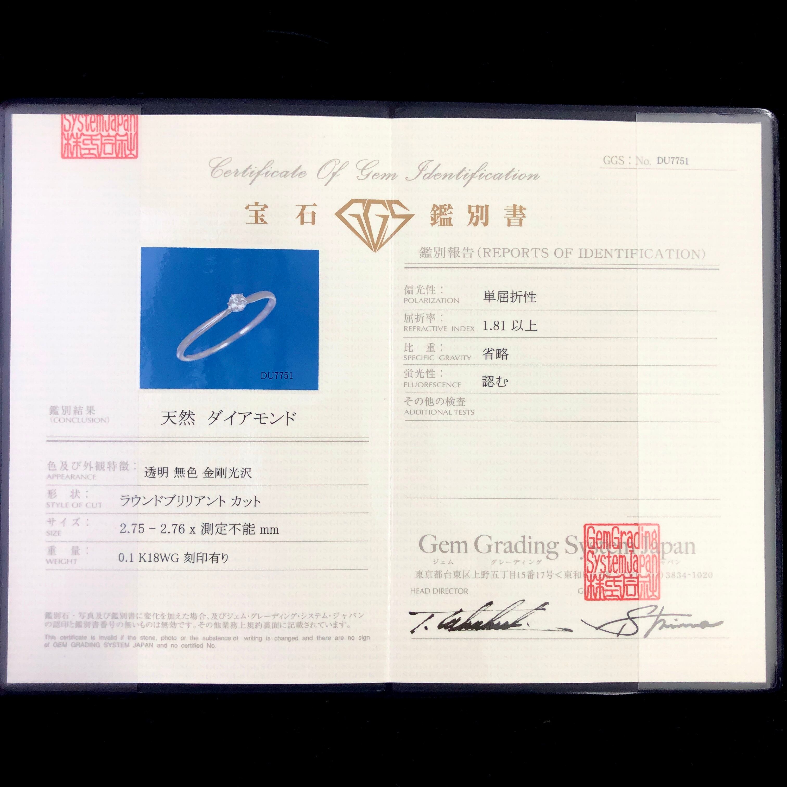 ✴︎鑑別書付✴︎K18WG ダイヤモンドリング 0.1ct N1169