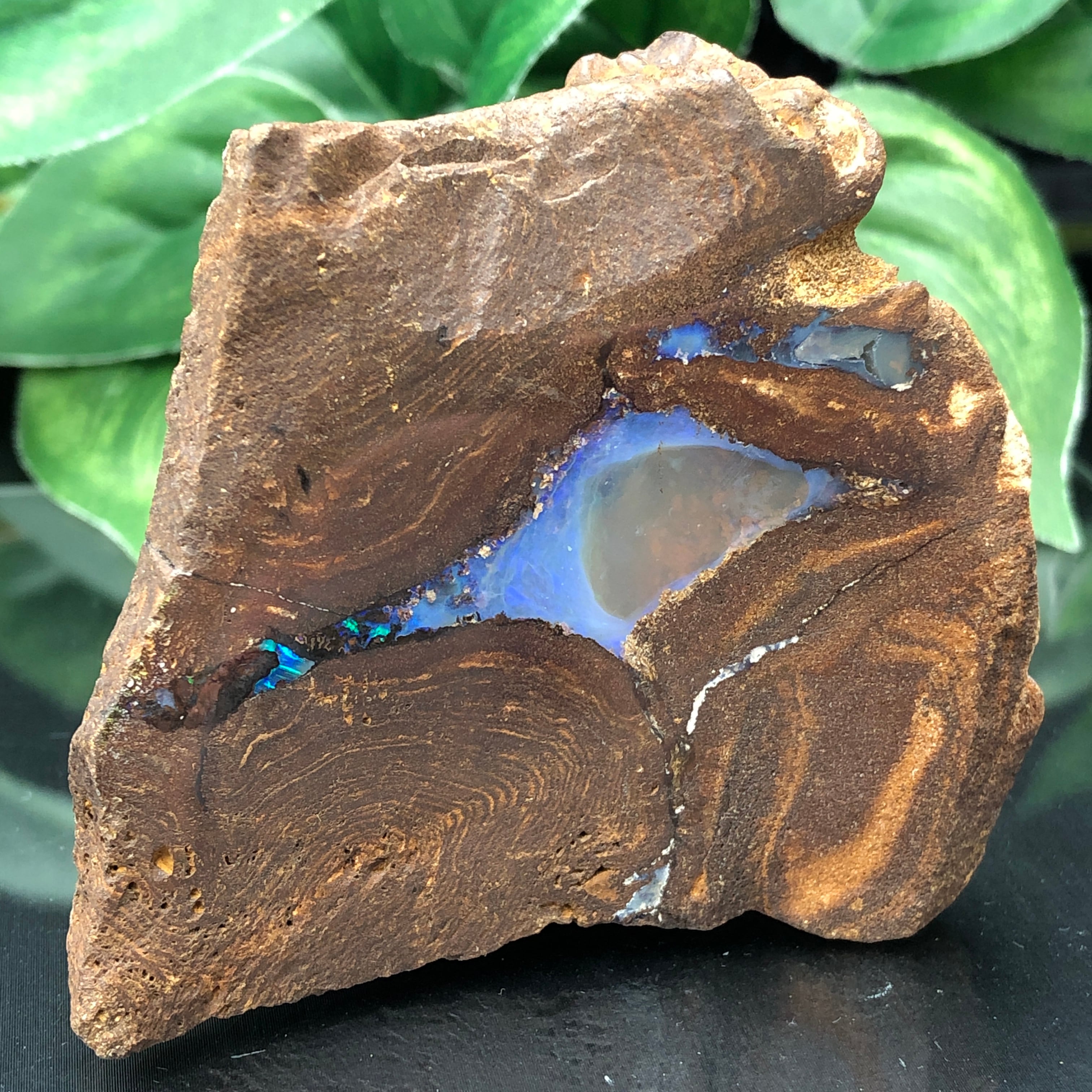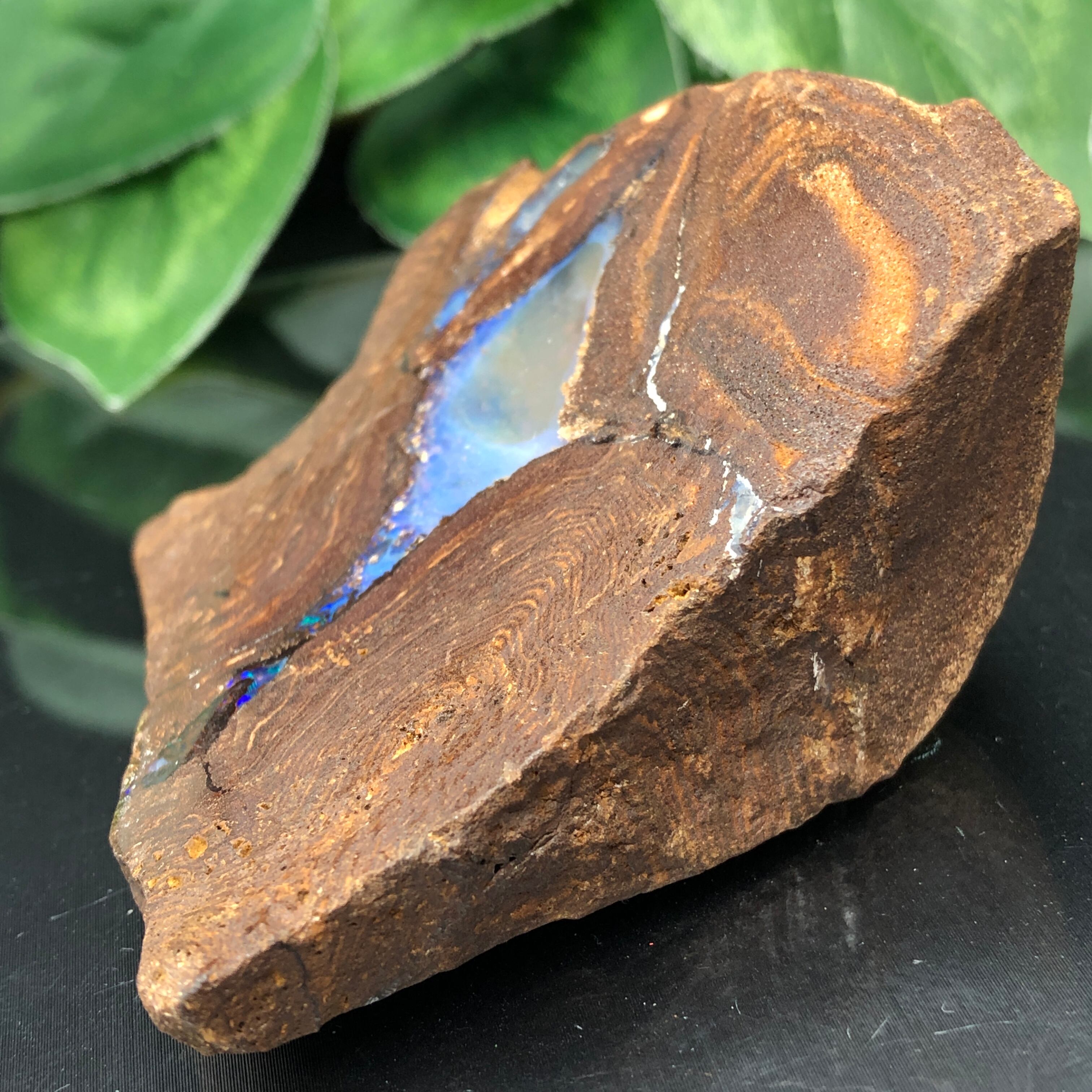 ブルー系の遊色効果が美しい、ボルダーオパール母岩付き原石が新入荷。