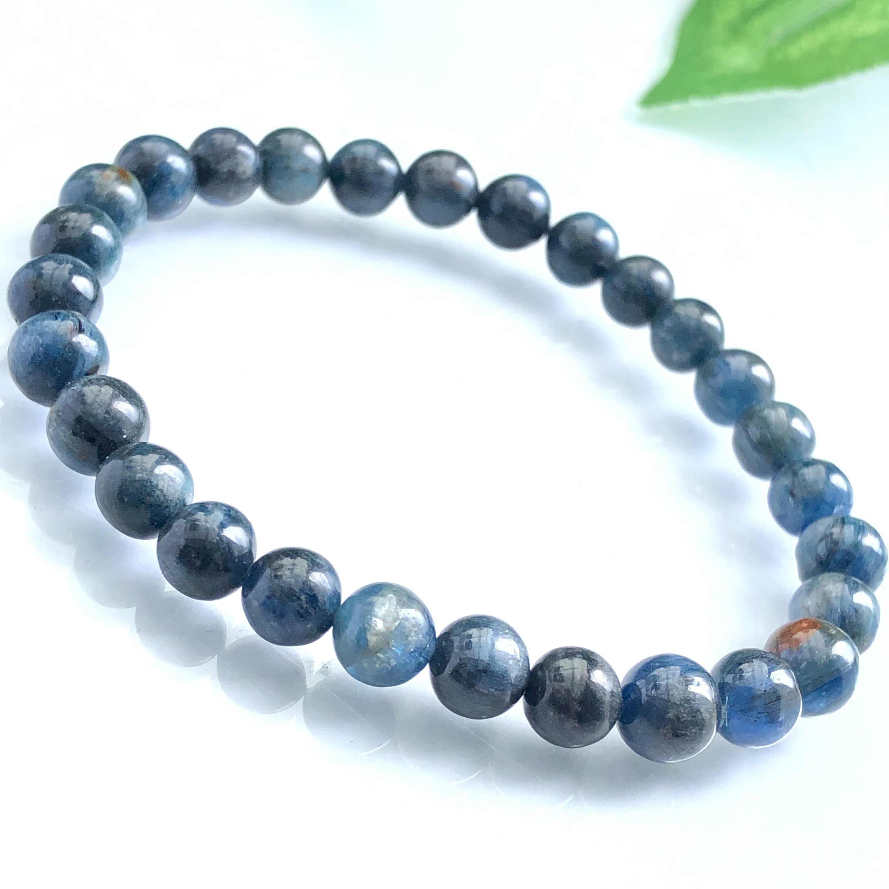美シラー入りブラジル産ダークブルーカイヤナイトブレスレット約6ミリy1646