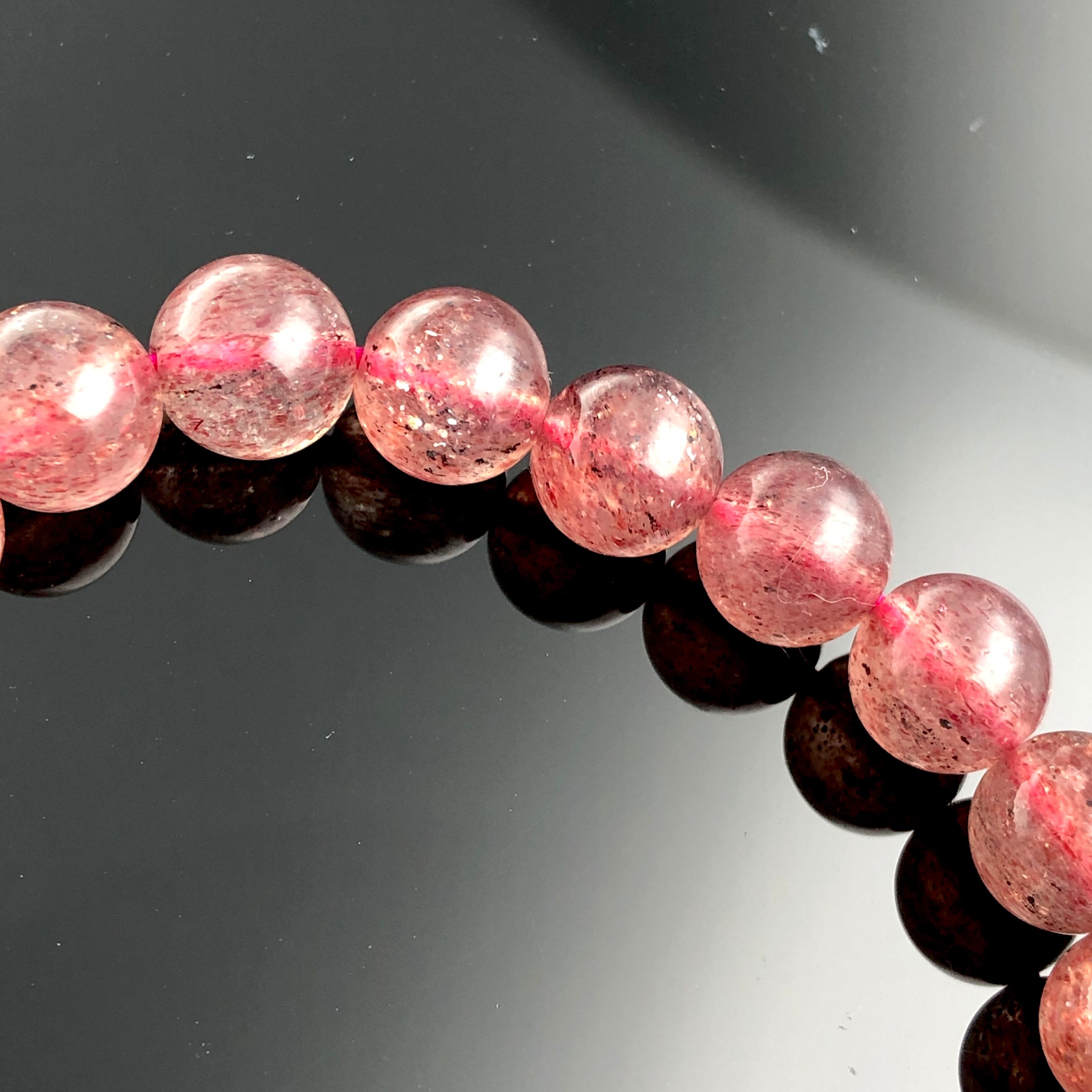 キラキラと光るピンクレッドカラーの内包物が入った、色合いが美しいアフリカンストロベリークォーツ(ピンクエピドートインクォーツ)。