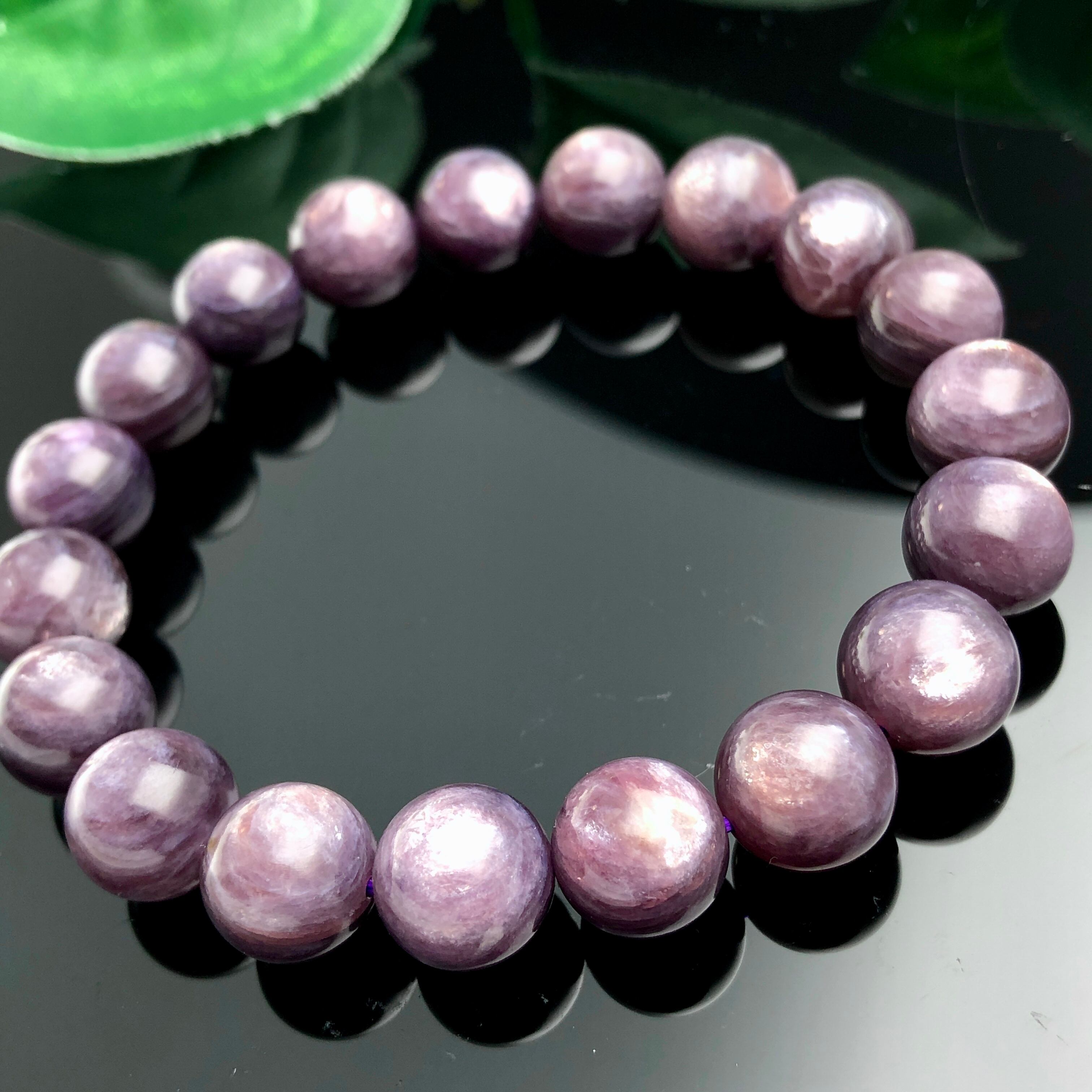 美しい光を放つ、パープルマイカのブレスレット。