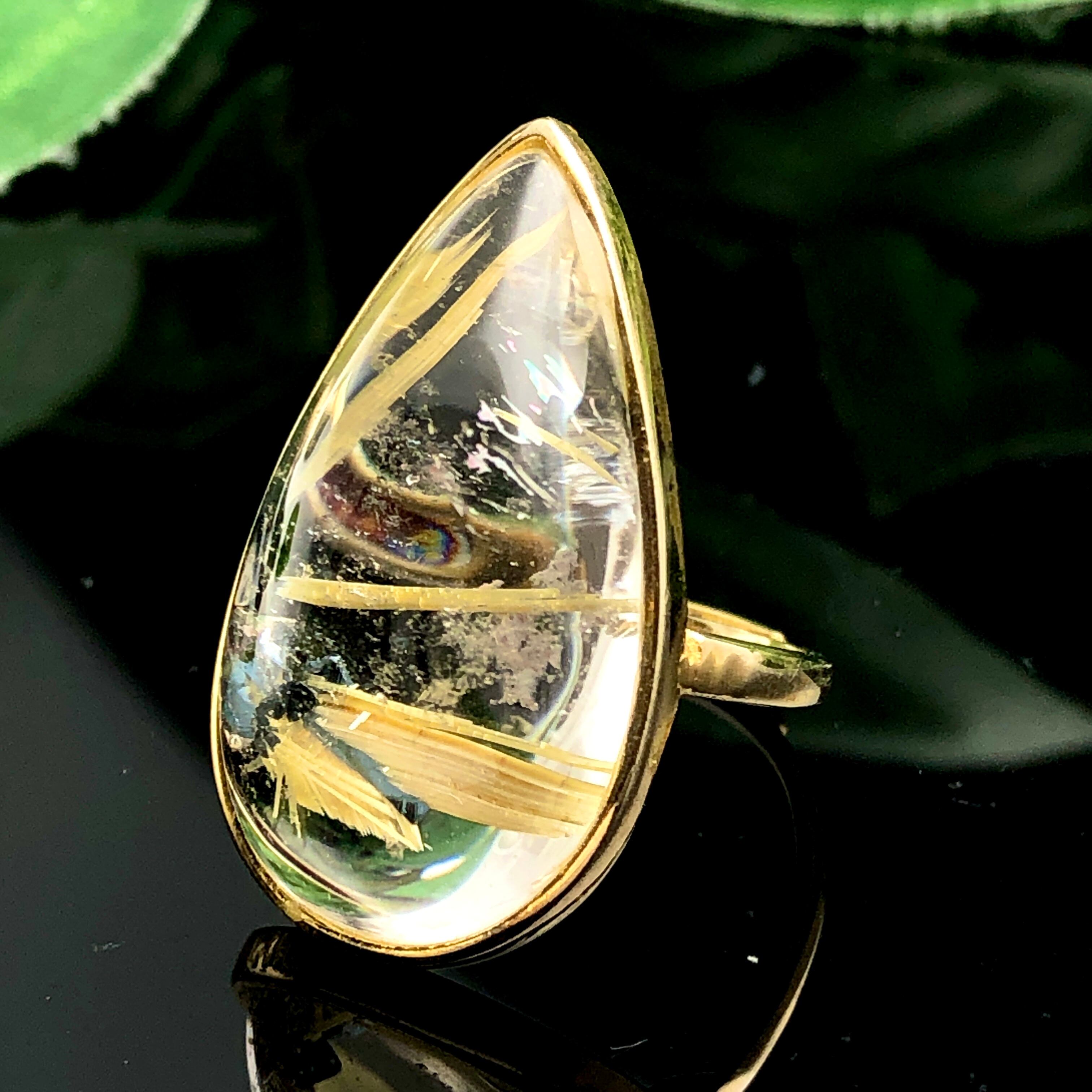 金運の石タイチン太陽ゴールドルチルクォーツリング 指輪 sv925 y1841