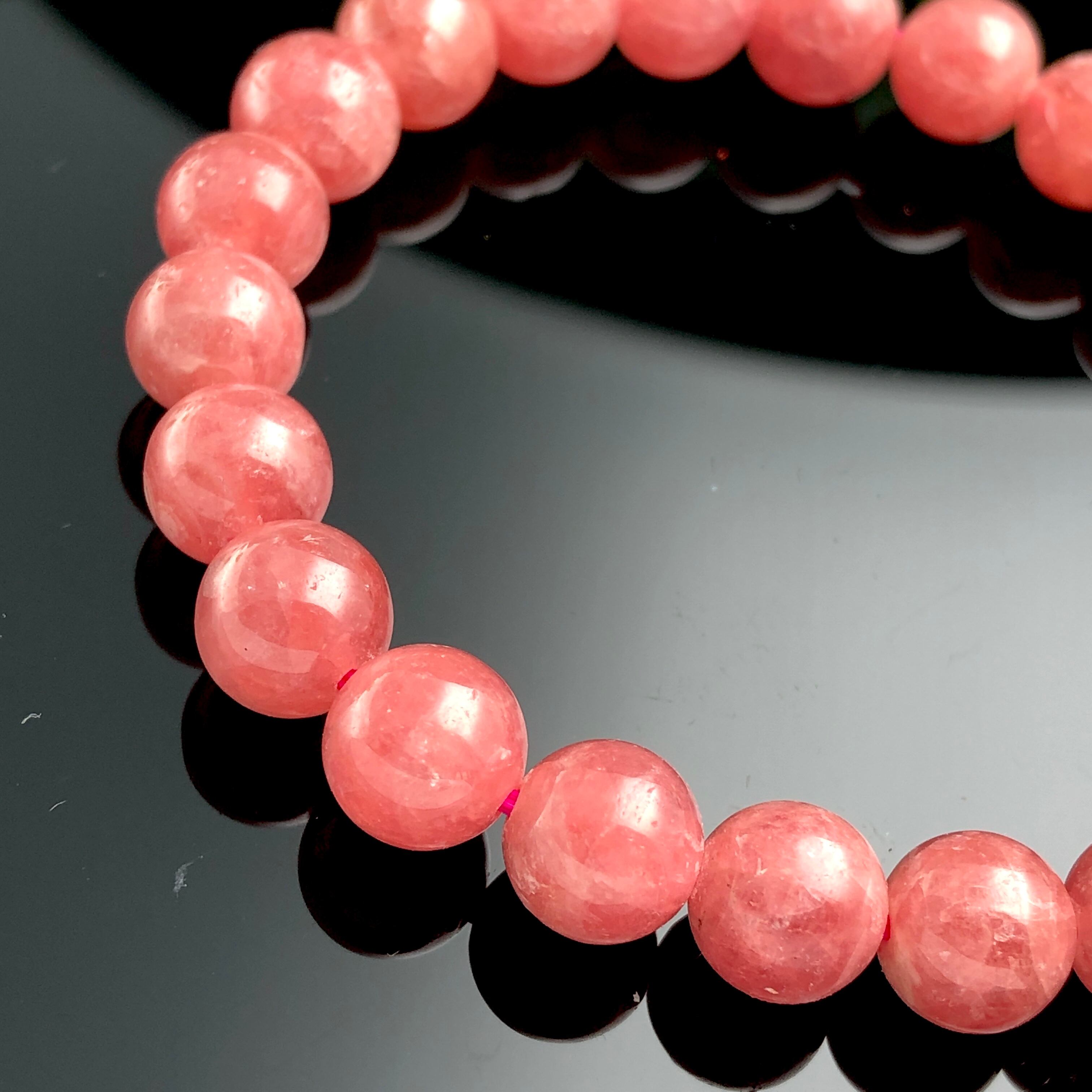 発色のよい、鮮やかなピンクレッドカラーのインカローズ(ロードクロサイト)ブレスレット。