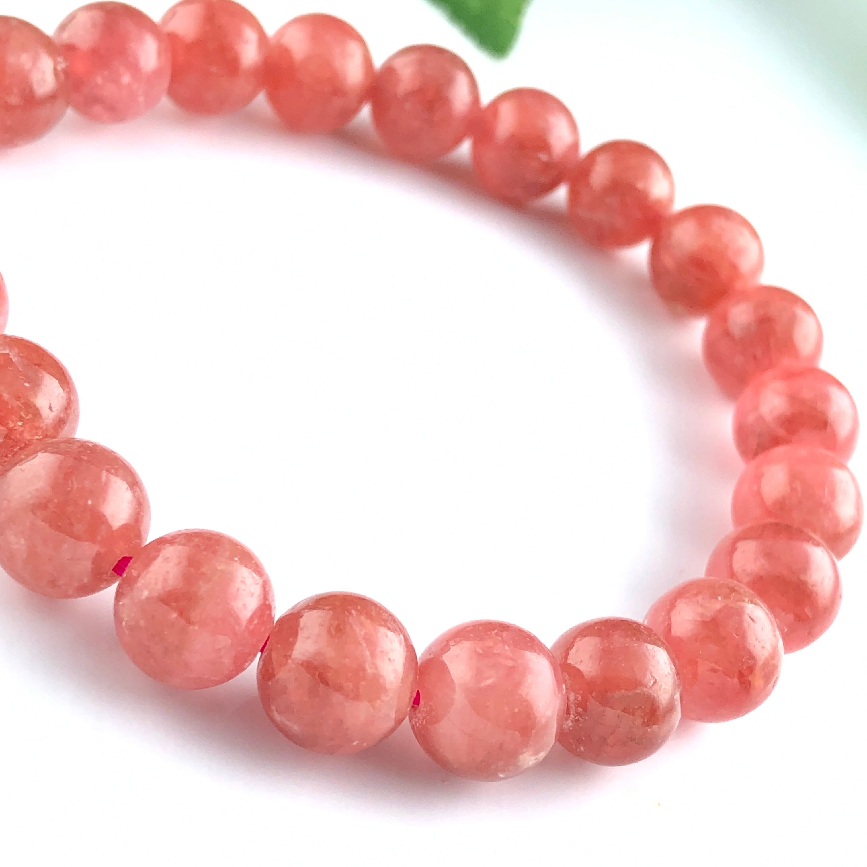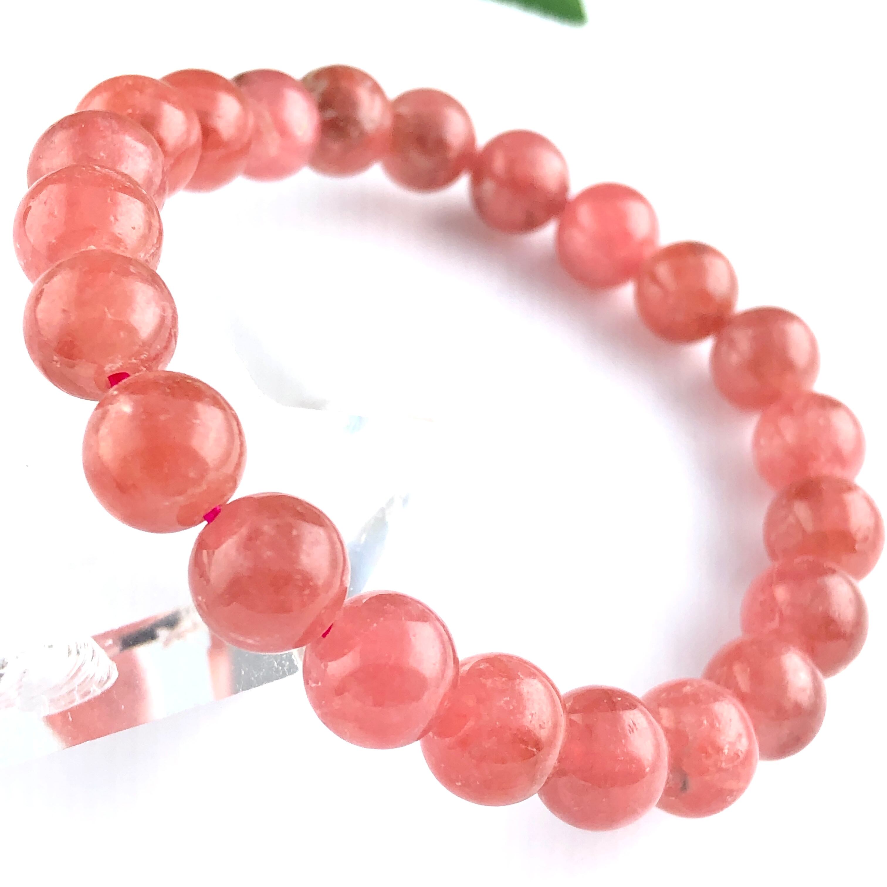 発色のよい、鮮やかなピンクレッドカラーのインカローズ(ロードクロサイト)ブレスレット。