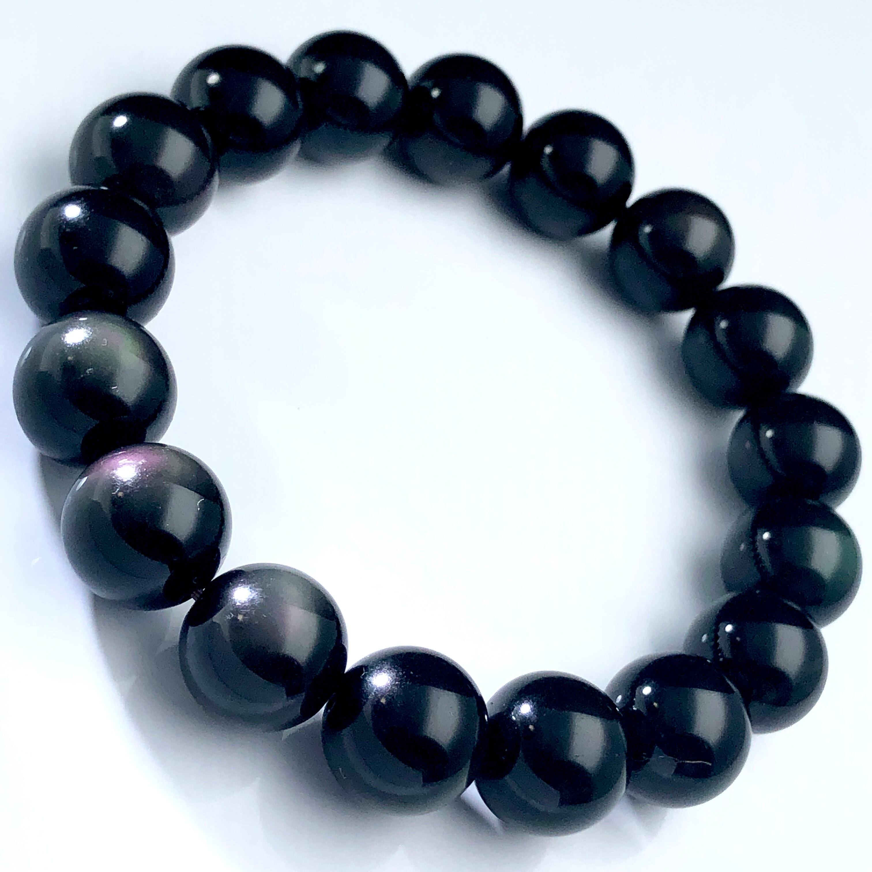 ブラックオブシディアン(黒曜石)の中に、虹色の輝きが光るパワーストーン。