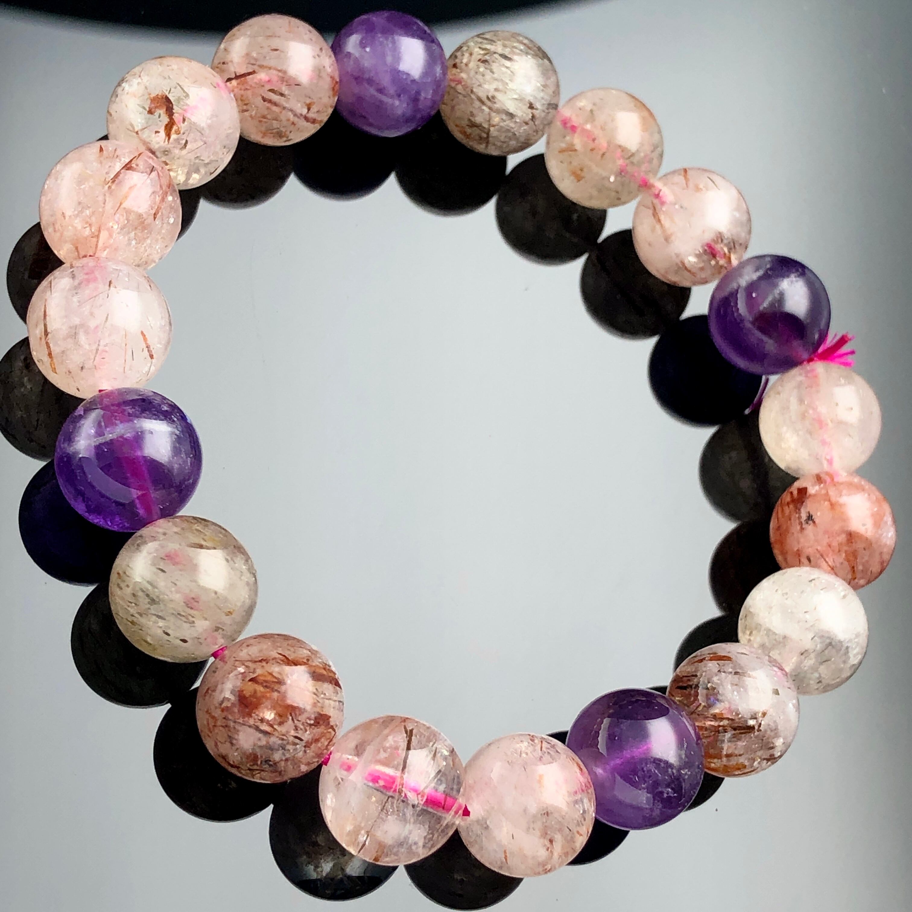 アメジスト・クリアクオーツ・スモーキークォーツ・カコクセナイト・ルチル・ゲーサイト・レピドクロサイトの 7種類の石のパワーが交わった強い力を持つと言われています。