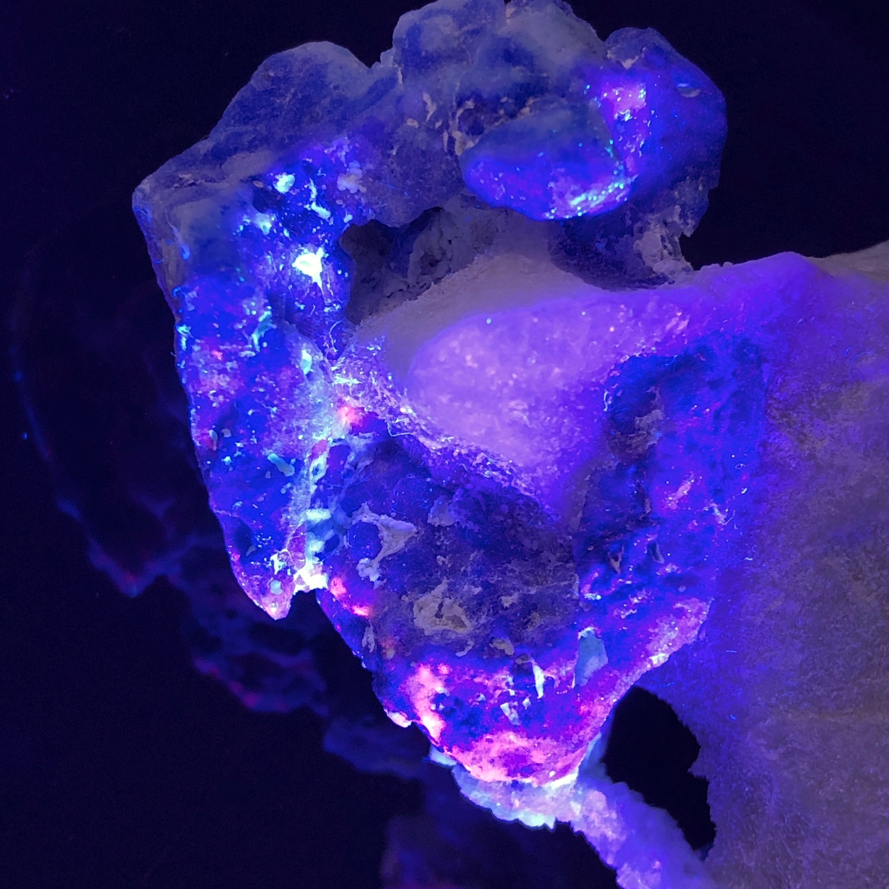 ブラックライトを照射するとオレンジ~ピンク系に蛍光する事で有名です。