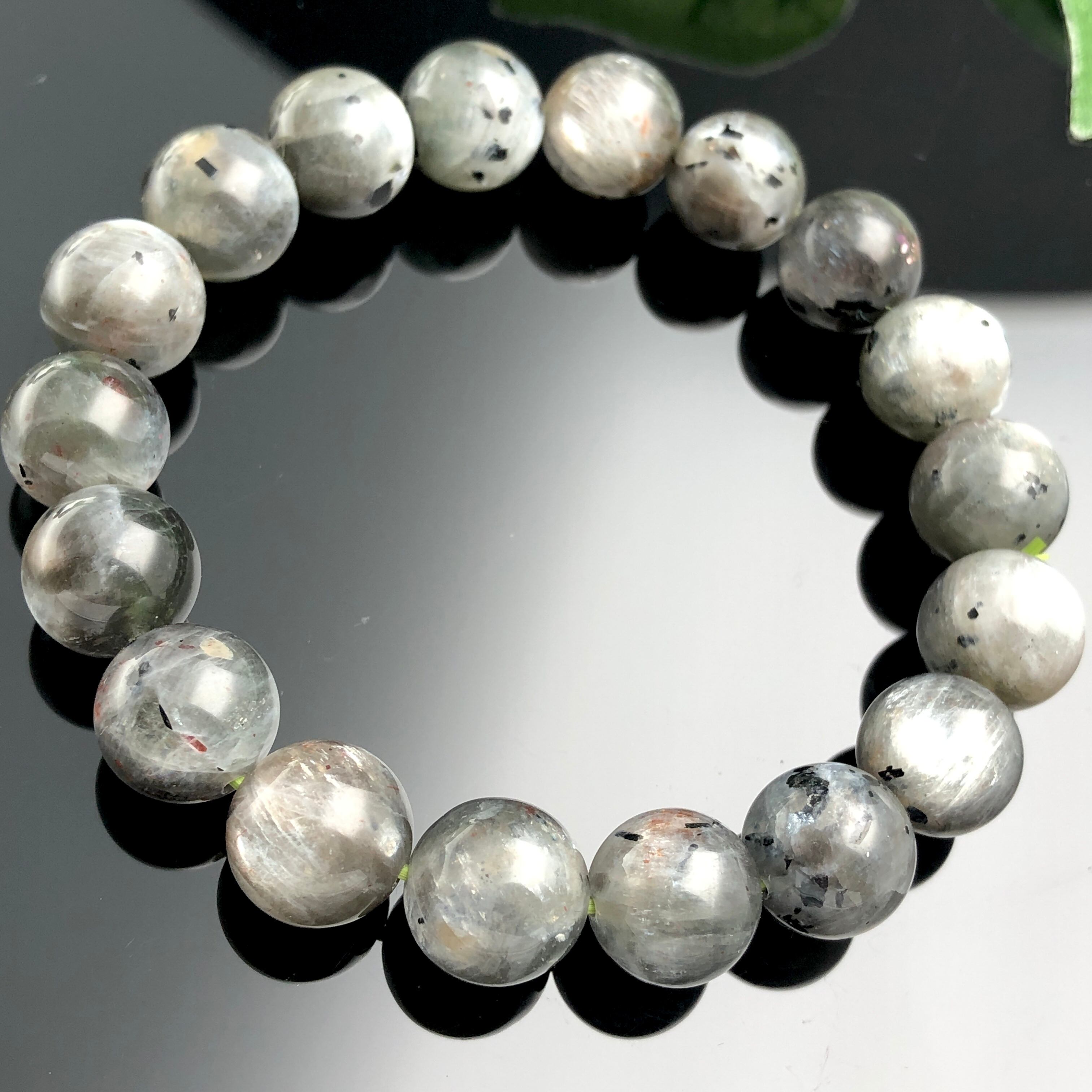 ホワイト、シルバー、ブルーのシラーを中心に、サンストーンのようなオレンジ系のアベンチュレッセンスが見られる粒もある、神秘的なパワーストーンです。