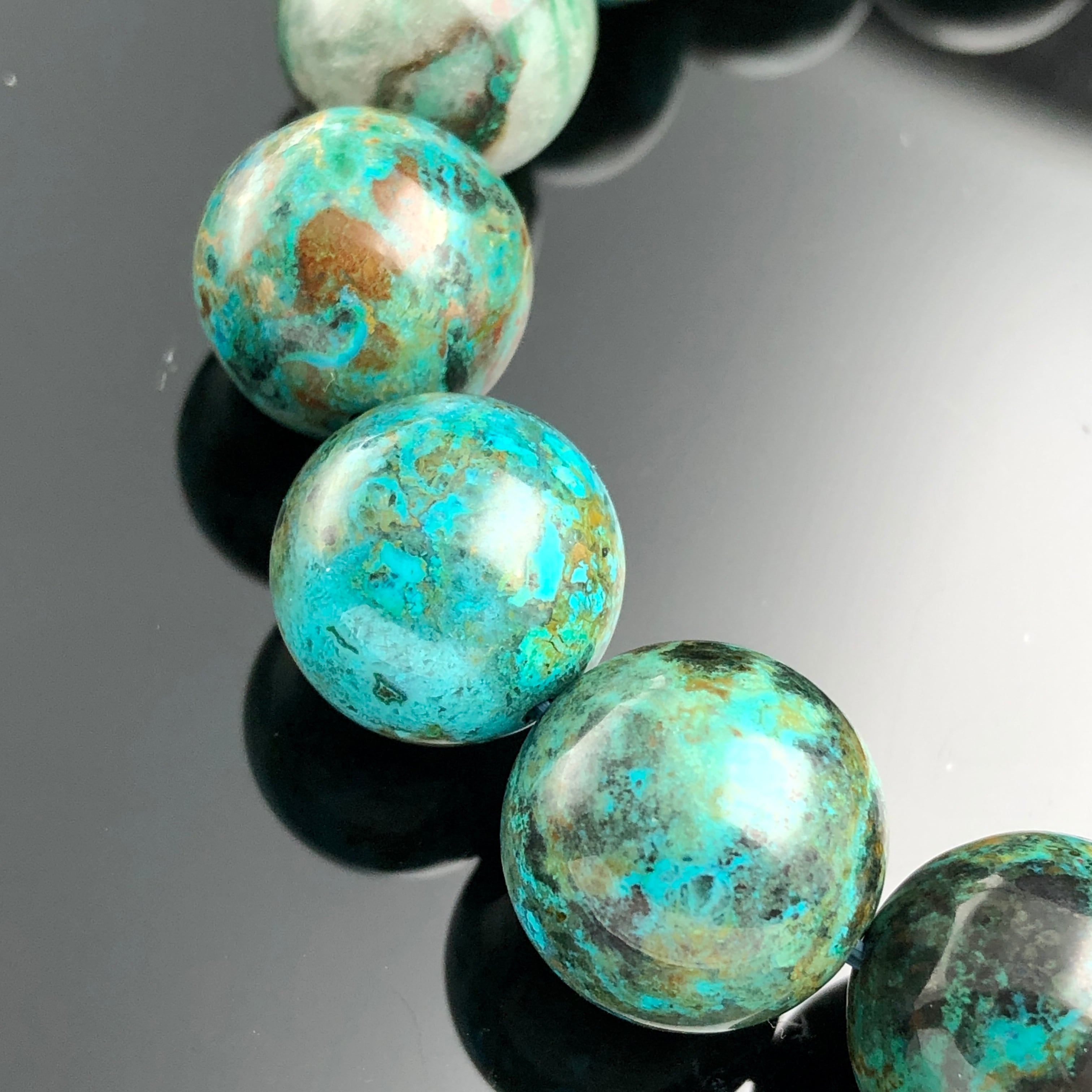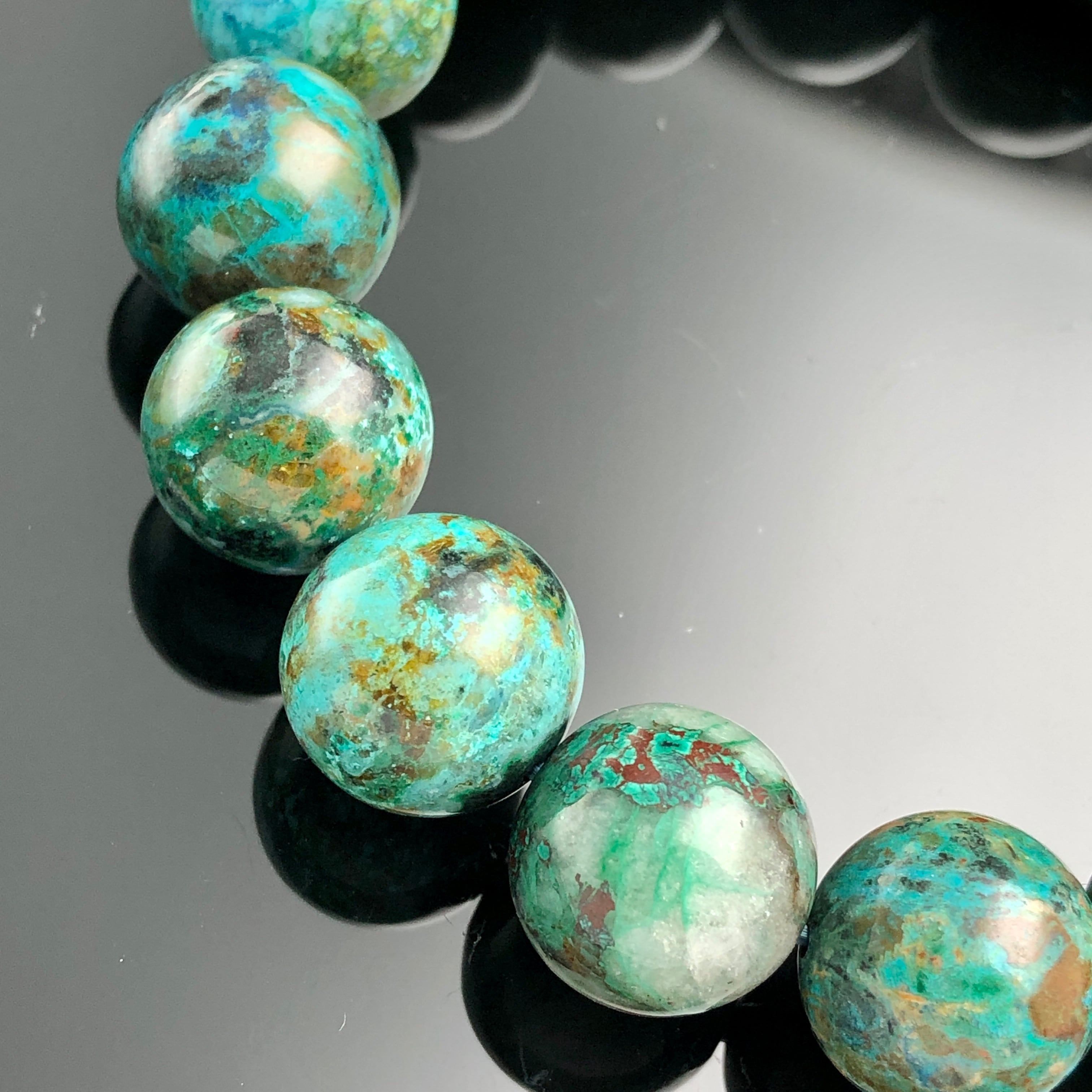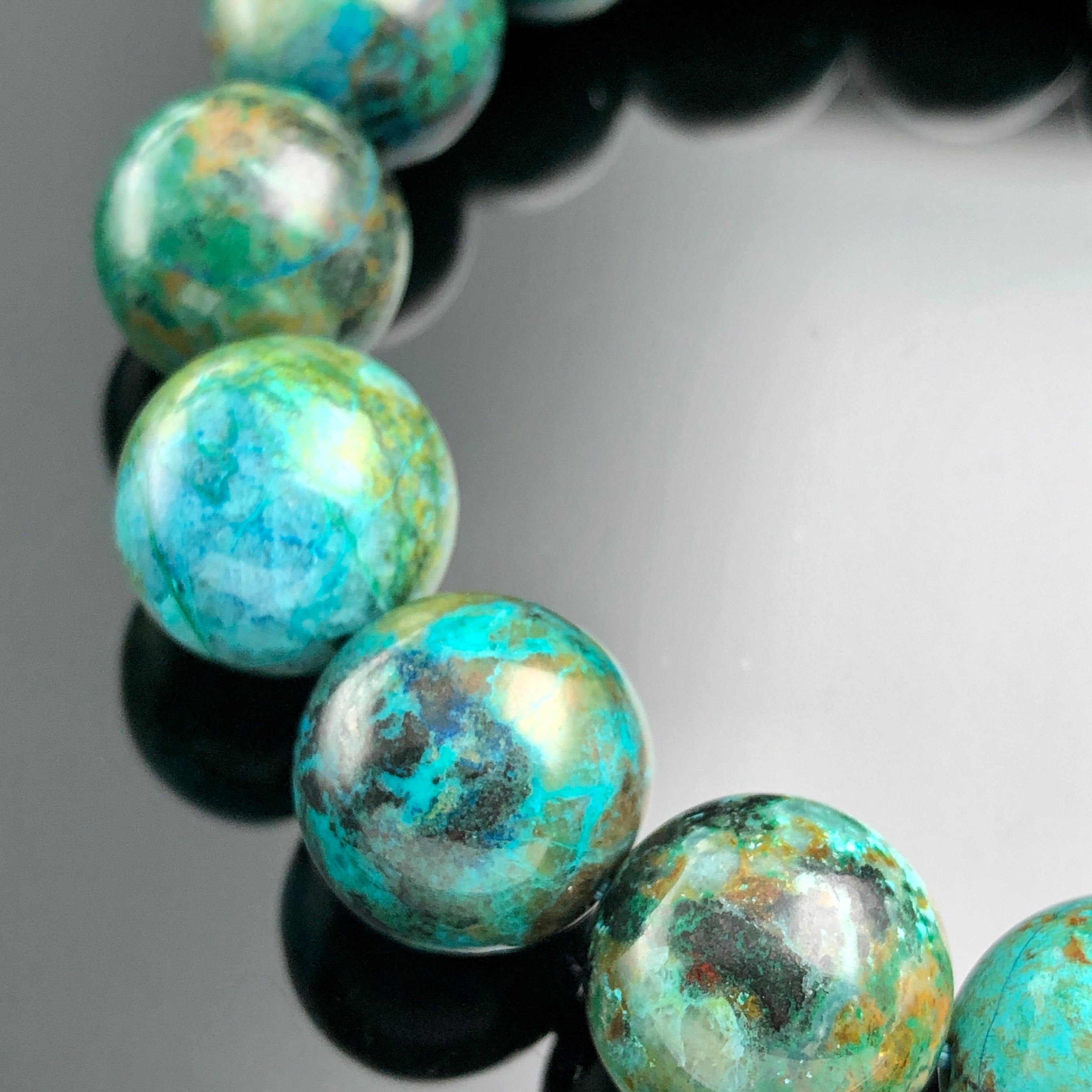 ブルー、グリーン、ブラウンと地球を思わせるような美しい色合いのクリソコラのブレスレット。