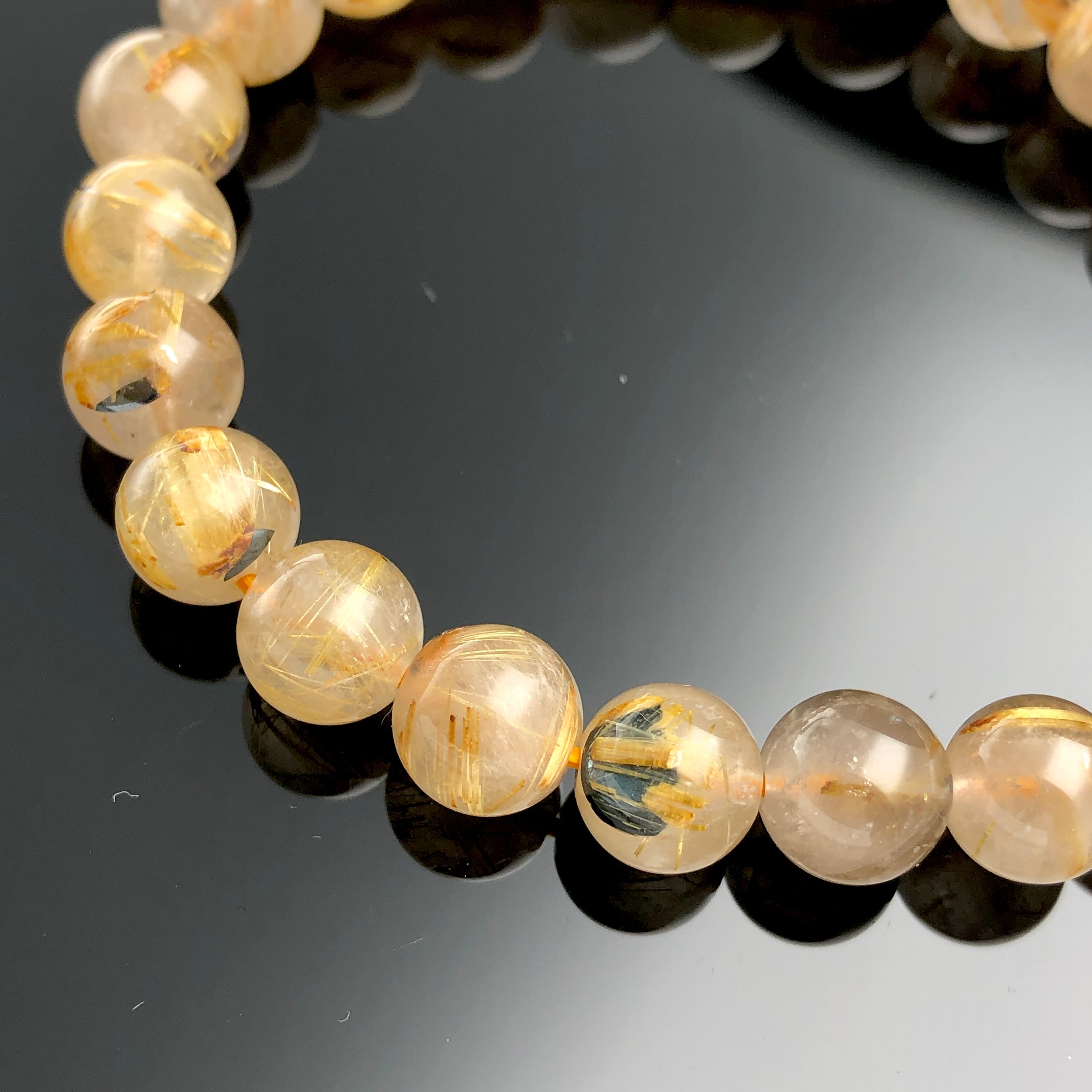 ブラジル産ヘマタイトインルチルクォーツ 太陽ルチルブレスレット約8ミリy2740/5632