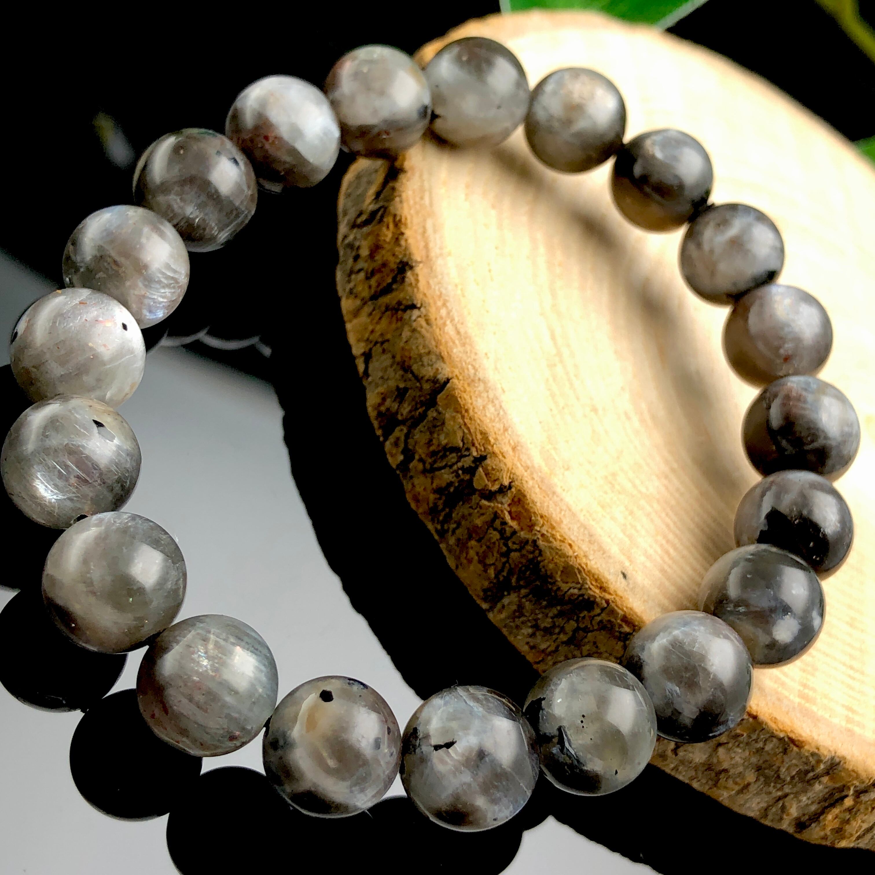 ホワイト、シルバー、ブルーのシラーを中心に、サンストーンのようなオレンジ系のアベンチュレッセンスが見られる粒もある、神秘的なパワーストーンです。