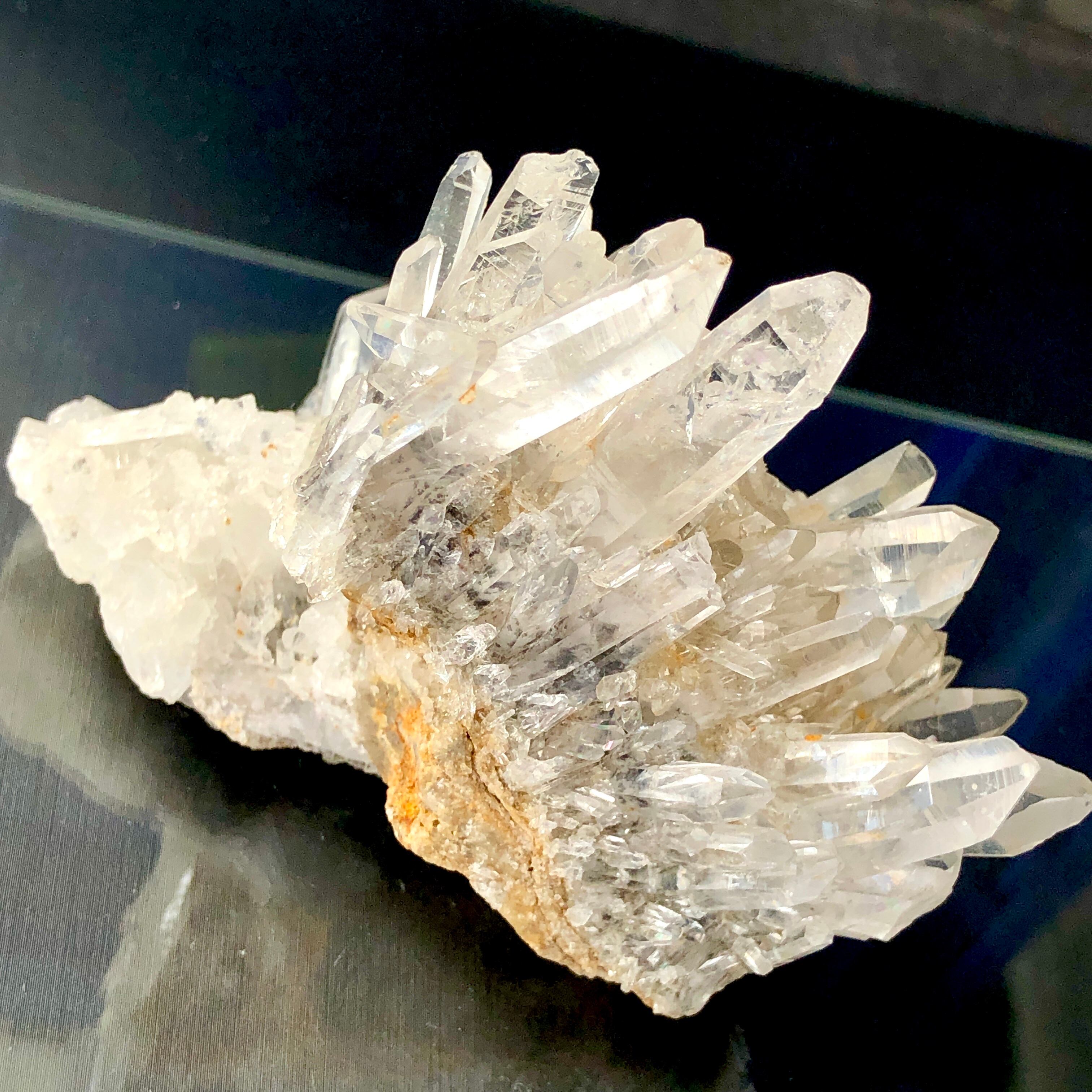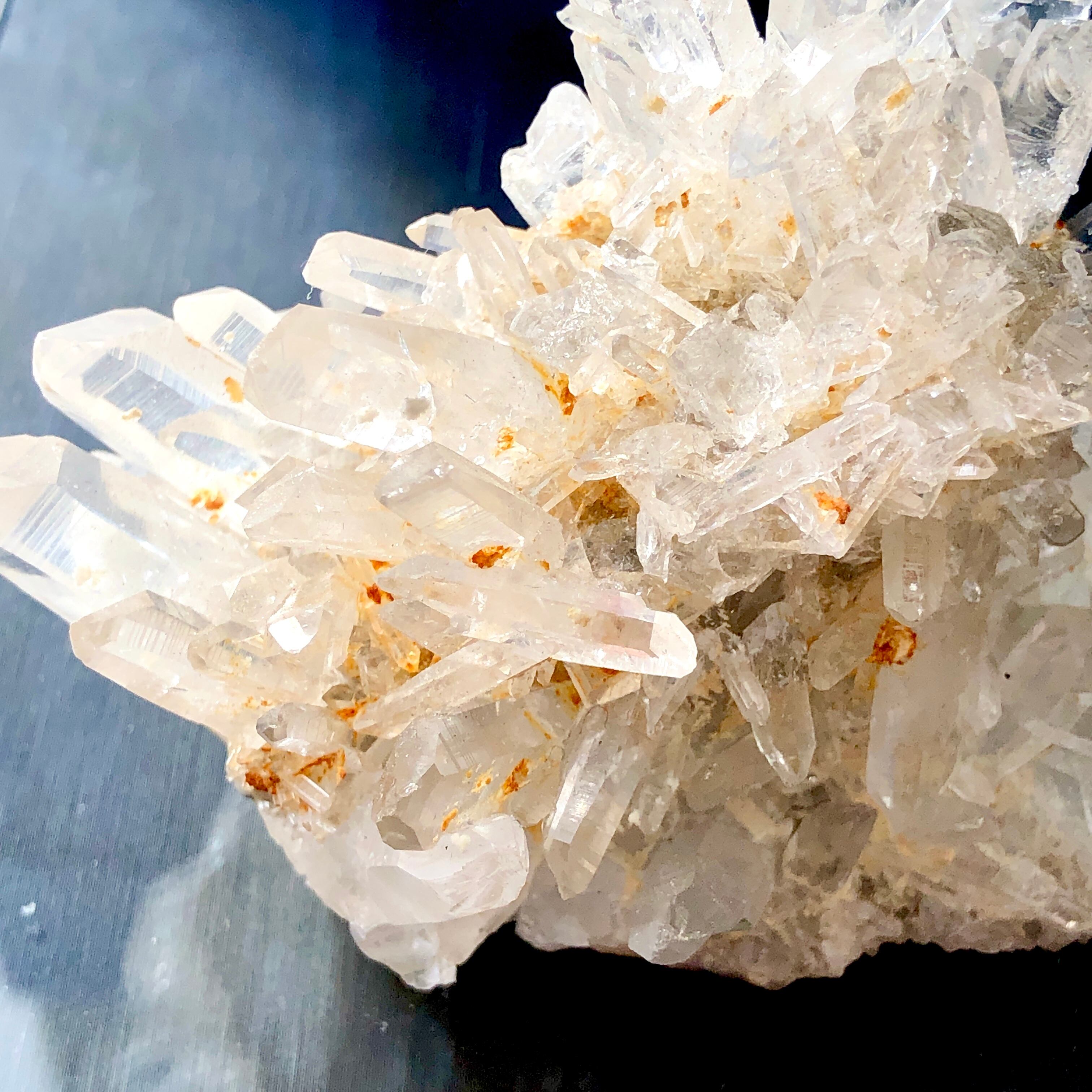 中国四川省ならではの、細く繊細なポイントがキラキラ輝く水晶クラスター。
