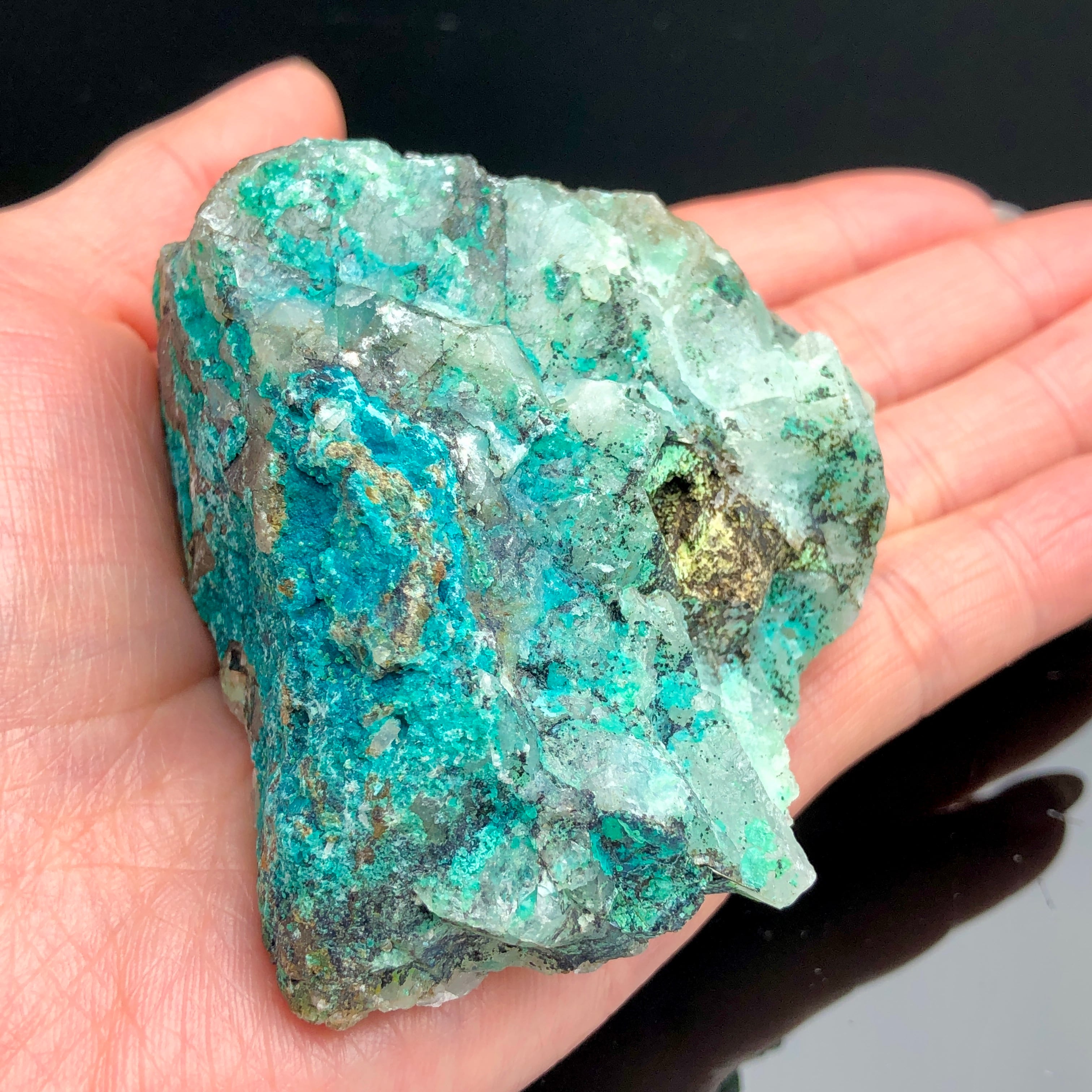 美しい色合いのクリソコラとシリカ(水晶)が混ざり合う、クリソコラシリカ原石。