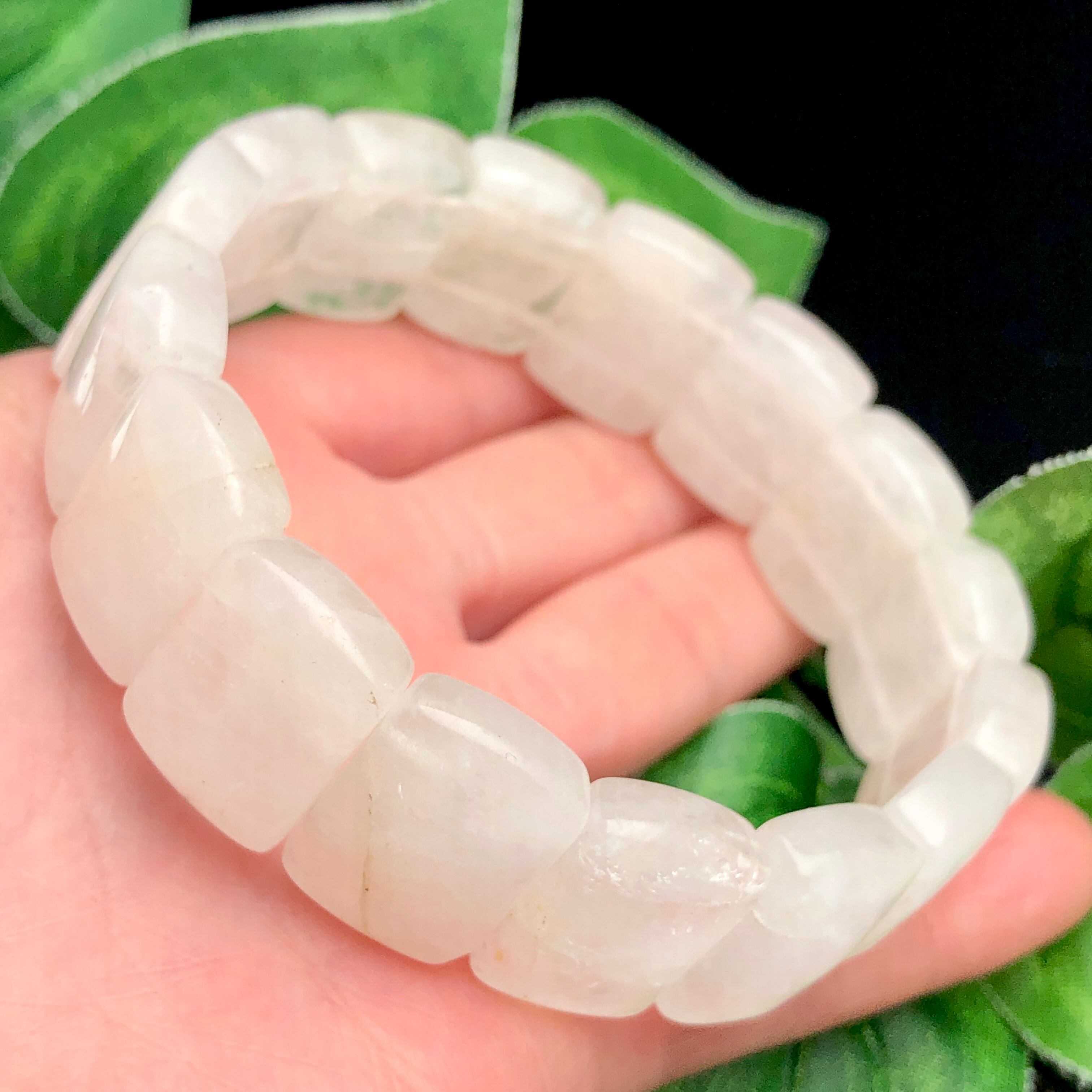 優しい乳白色カラーの、ボリューム感たっぷりの水晶バングル。