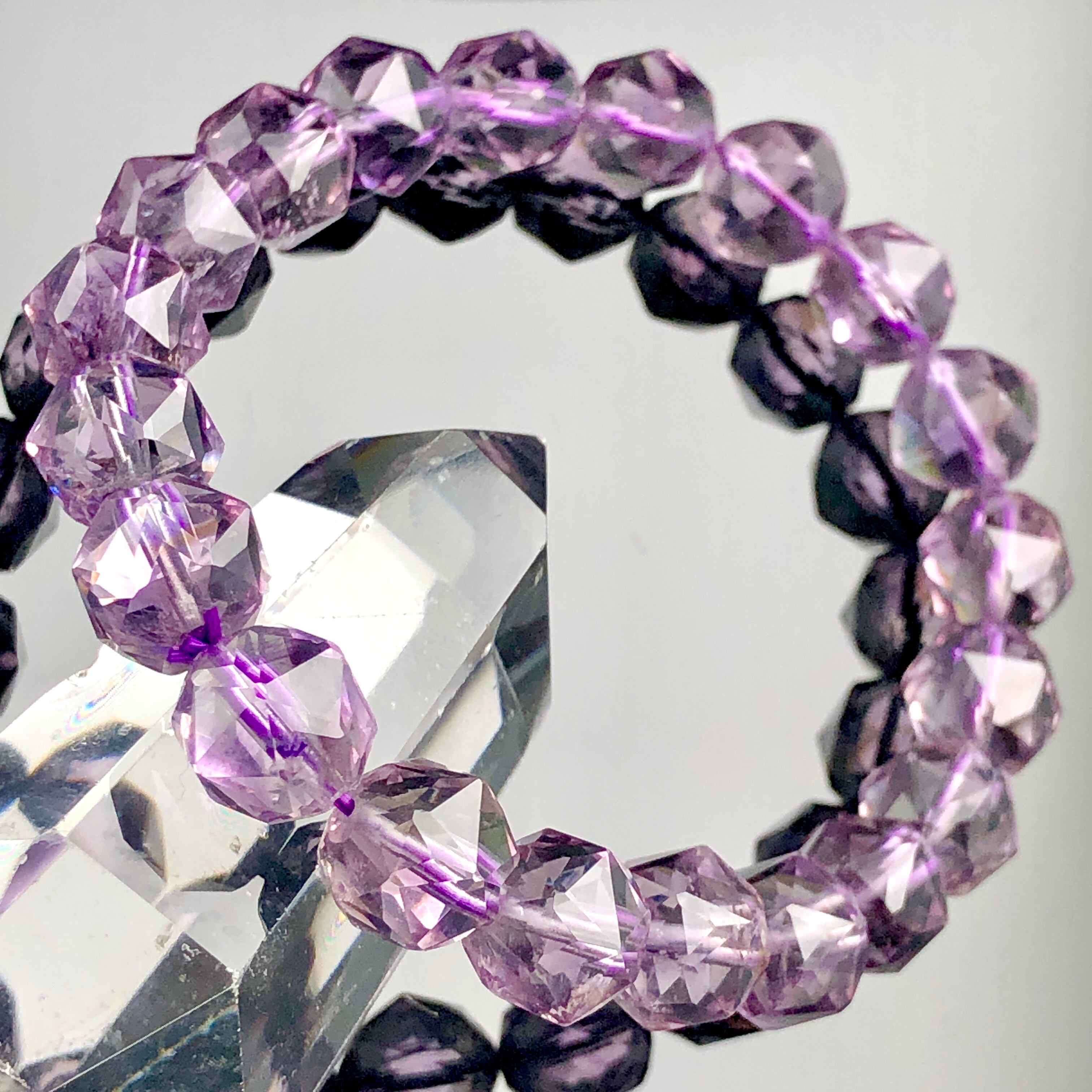 気品あるパープルカラーが魅力的な、アメジストのシンプルなデザインブレスレット。