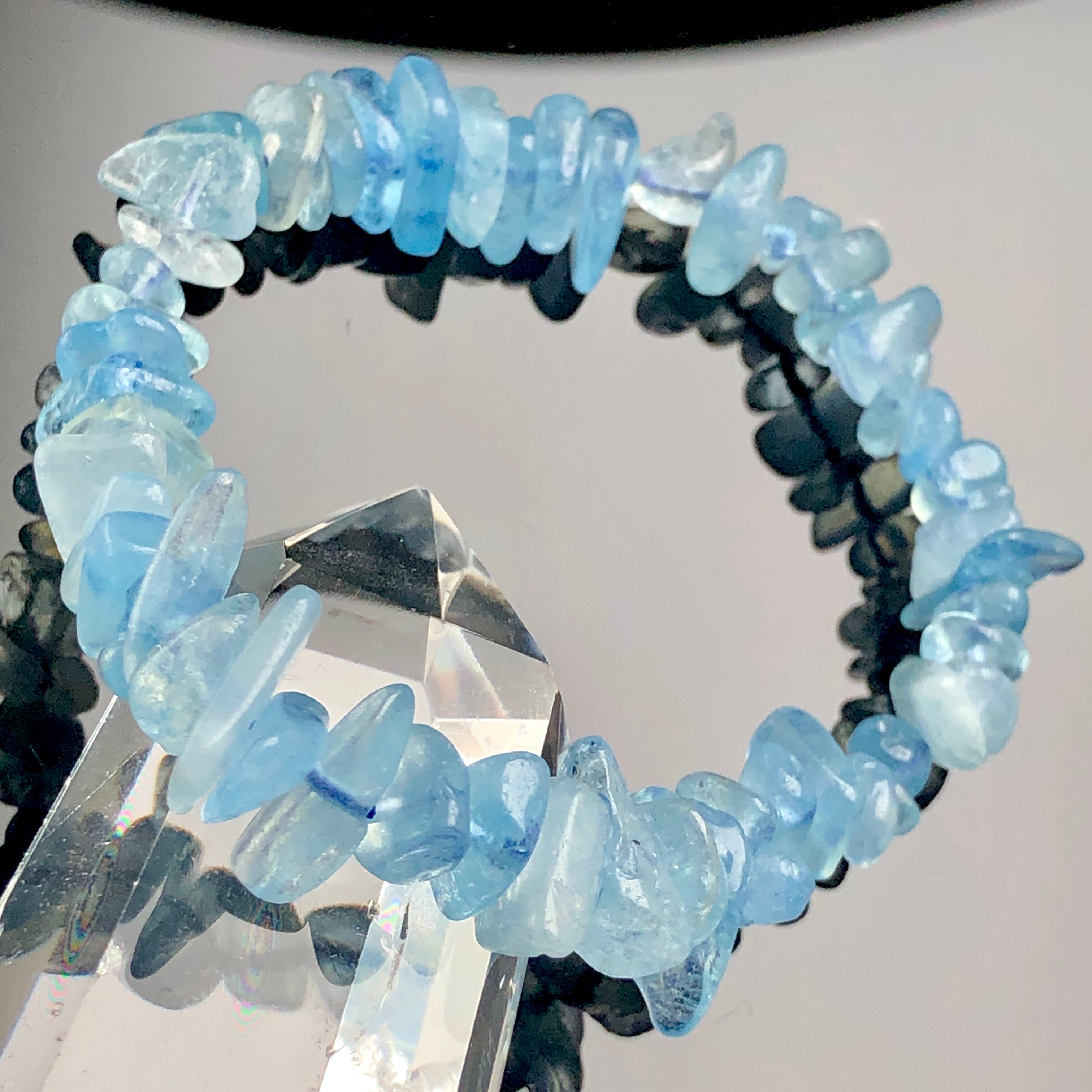 ブラジル産サンタマリアアクアマリンさざれブレスレット約5-12ミリ s469