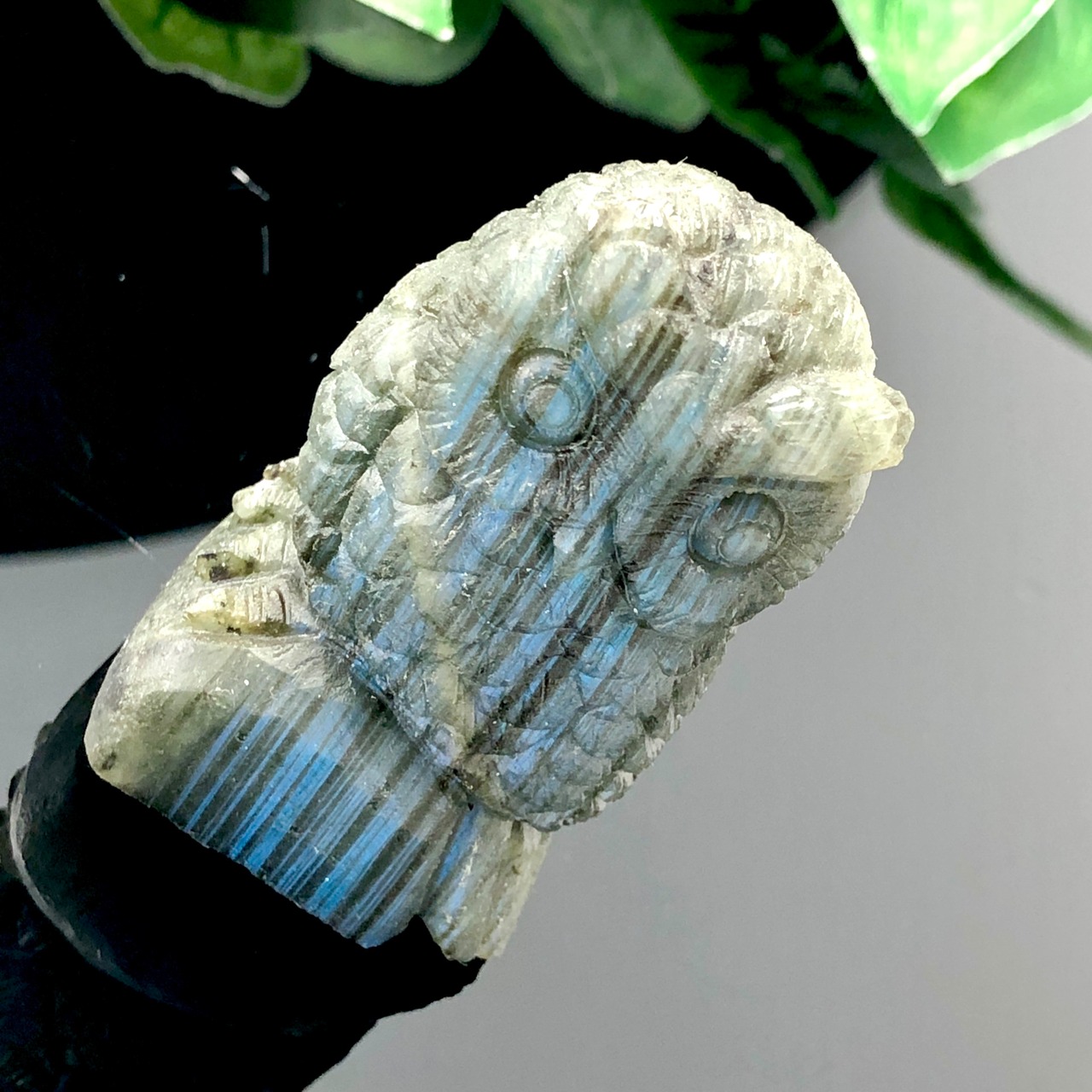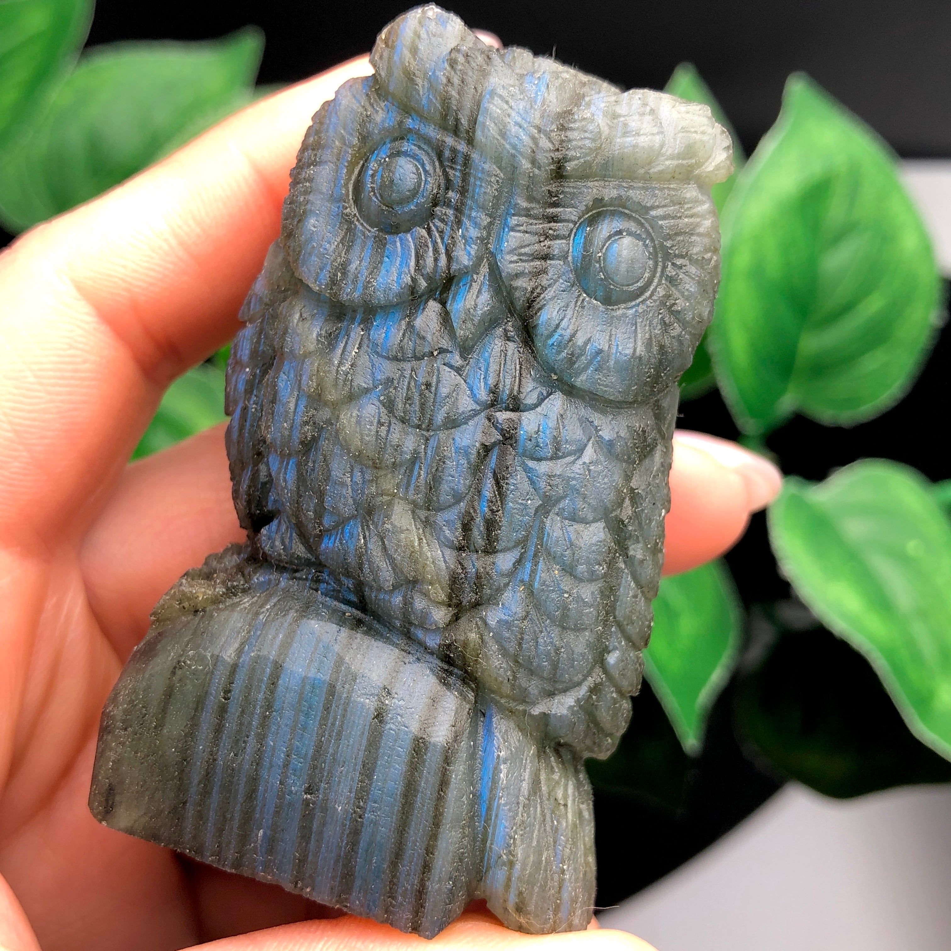 美しい彫刻【ラブラドライト】フクロウ置物 s547